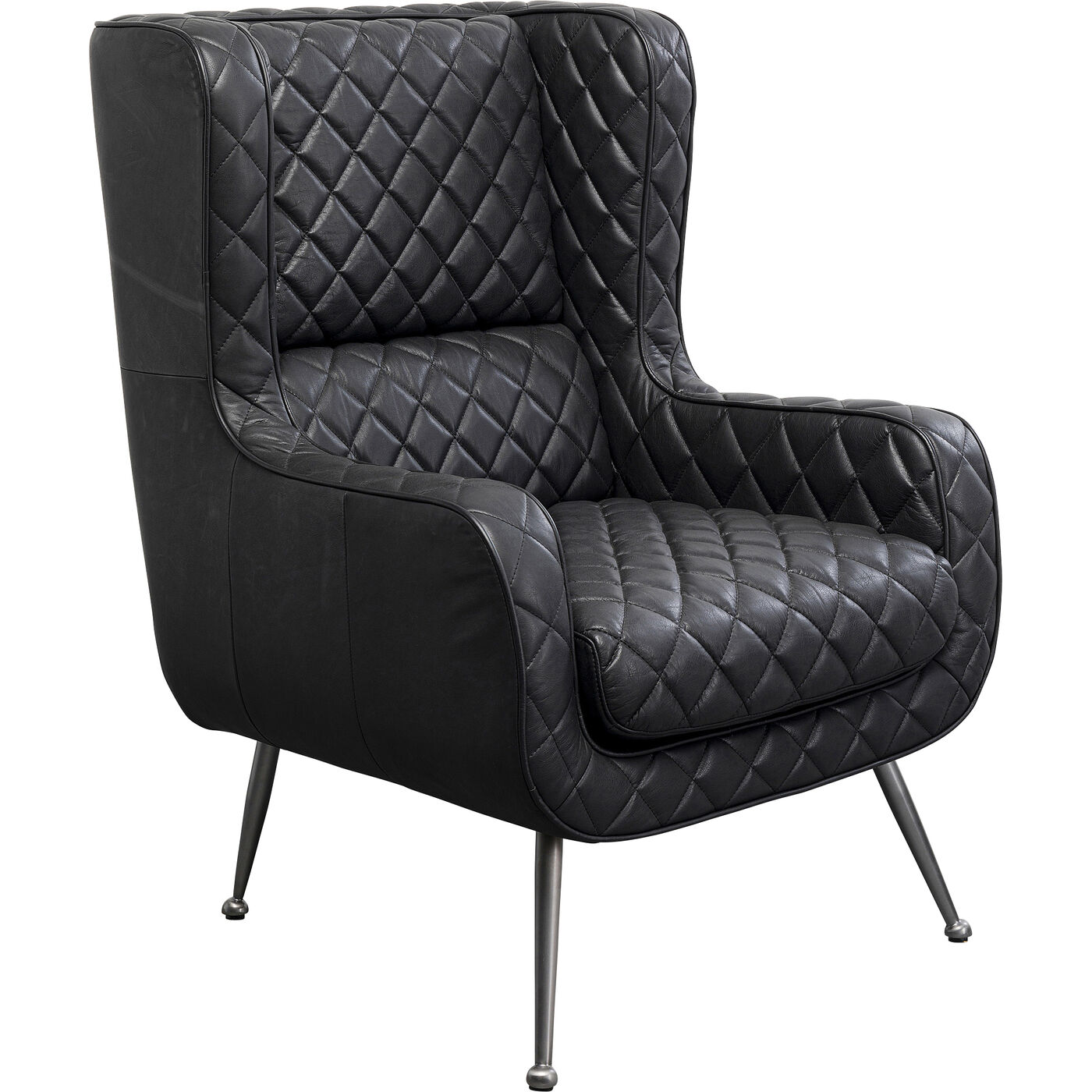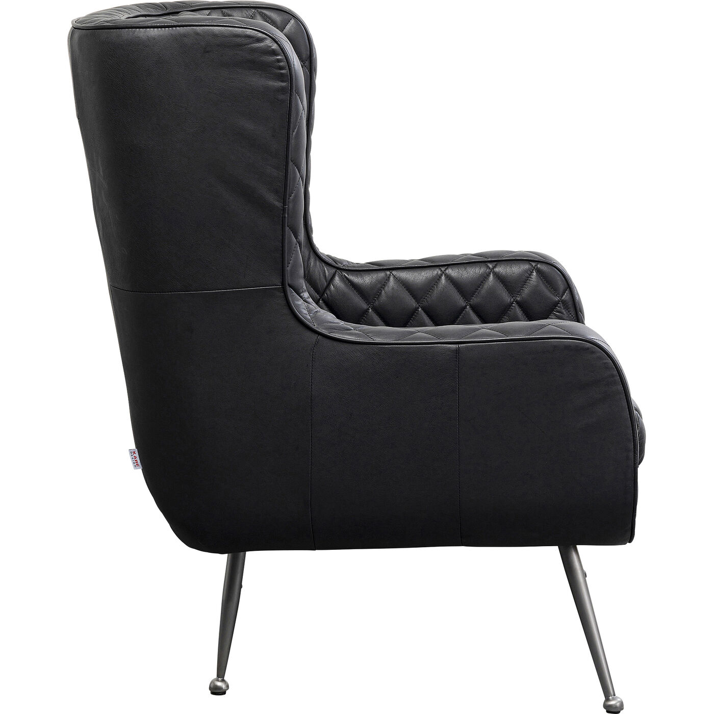Der schwarze Ledersessel stellt eine moderne Interpretation des klassischen Ohrensessels dar, der mit seinem zeitgemäßen Design beeindruckt. Sein markantes Merkmal ist der Rautenmuster-Steppbezug aus hochwertigem Leder, der ihm eine luxuriöse Ausstrahlung verleiht. Mit seiner bequemen Polsterung lädt dieser Lesesessel dazu ein, sich zurückzulehnen und zu entspannen. Nutzen Sie ihn als eleganten Loungesessel im Wohnzimmer, wo er als kraftvolles stilistisches Statement ein Design-Statement setzt.