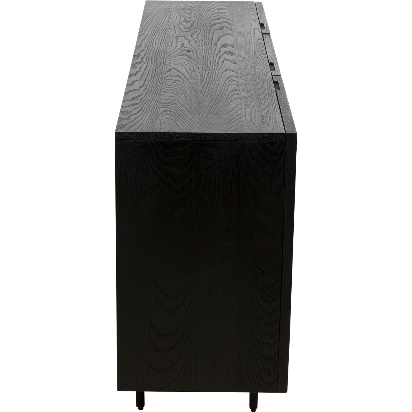 Dieses schicke Sideboard mit einem Muster, das jeden in seinen Bann zieht, ist ein atemberaubender Hingucker für jedes moderne Interieur. Das schwarz-weiß lackierte Holz und die pulverbeschichteten Stahlbeine verleihen ihm eine wertige Eleganz. Hinter drei Türen findet sich viel Stauraum. Von Hand gefertigt ist jedes Möbel ein Einzelstück. Die besondere Front des Sideboards zieht alle Blicke auf sich und macht es zu einem echten Highlight in jedem Raum. Ob im Wohnzimmer oder Essbereich, das Arctic Sideboard ist ein Must-Have für jeden, der auf der Suche nach einem stilvollen Möbelstück mit viel Stauraum ist.