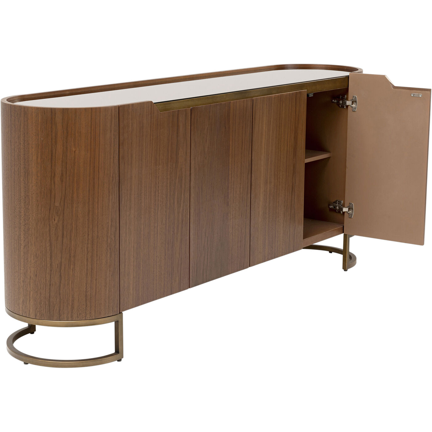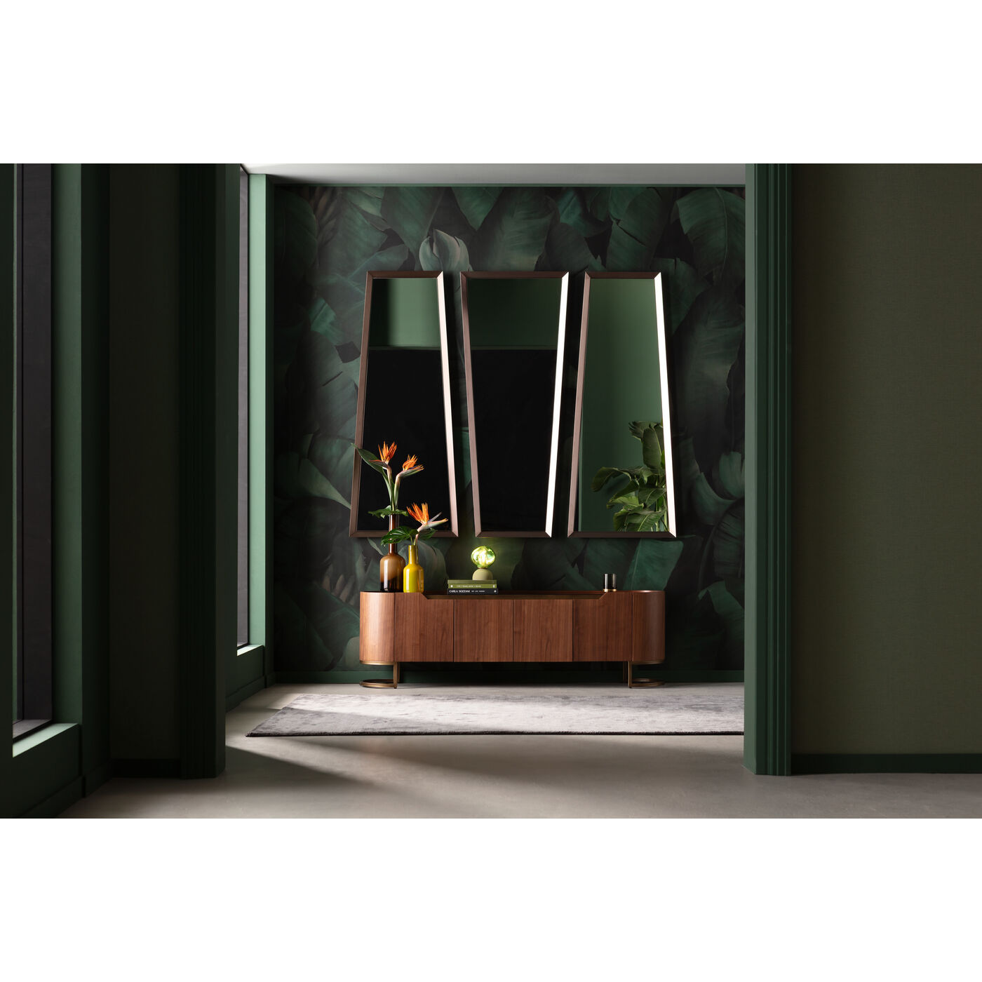Die Möbel aus der Giorgio-Kollektion bringen anspruchsvolles Design und wohnliche Eleganz gekonnt auf den Punkt. Ausdrucksstarkes Holz trifft auf edle Glasakzente, die dem Gesamtbild Tiefe und einen Hauch von Glamour verleihen. Abgerundete Linien und filigrane Metallfüße sorgen für eine moderne Leichtigkeit, die trotzdem Bodenständigkeit ausstrahlt. Dieses Sideboard bietet großzügigen Stauraum hinter stilvoller Fassade – perfekt für Geschirr, Bücher oder Alltagsaccessoires. Die Oberfläche eignet sich ideal für dekorative Arrangements mit Vasen, Leuchten oder persönlichen Lieblingsstücken. Innen punktet die Kollektion mit viel Platz für Lieblingsstücke und Alltagshelfer – außen mit einem Look, der Eindruck hinterlässt. Ideal für stilvolle Wohnkonzepte, die Wert auf Charakter, Komfort und Qualität legen.