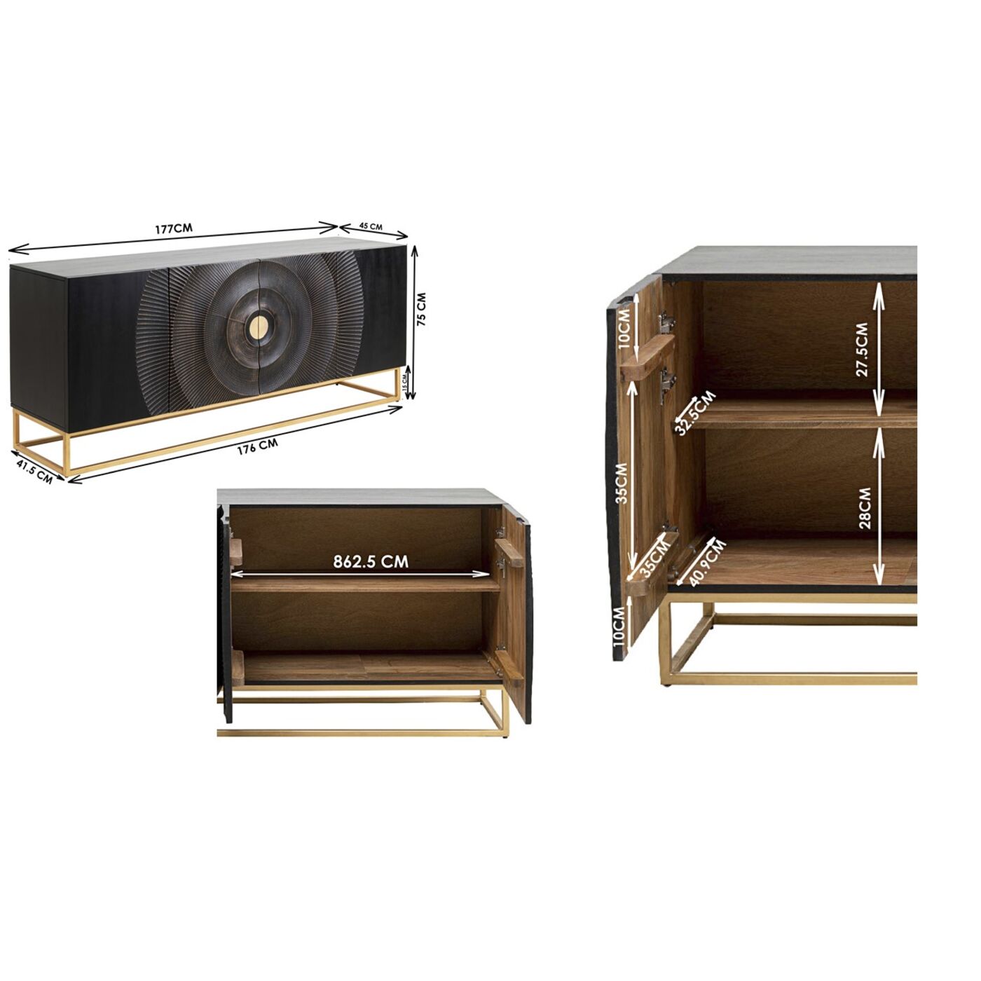- Schwarzes Sideboard aus Massiv-Holz mit goldenem Gestell