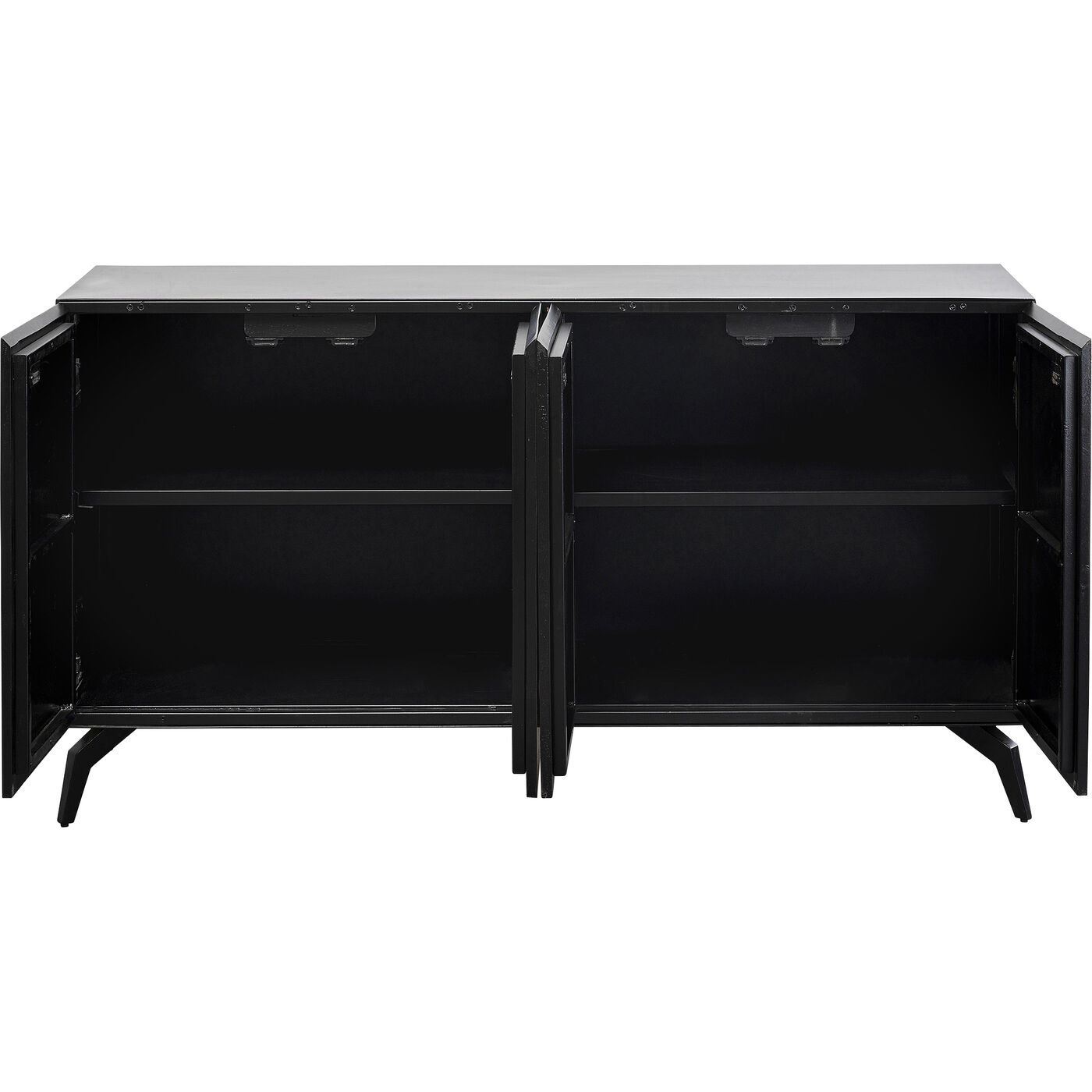 Eine typisches KARE Möbel, denn die Fronten sind außergewöhnlich mit ihrem Muster, und das kleine Sideboard erzählt von traditioneller Schreinerarbeit. Wie schön, dass mit dieser Kommode Persönlichkeit ins Wohnzimmer einzieht.Fachboden: höhenverstellbar 50 kg max. Belastbarkeit handgearbeitet zerlegtKorpus: Mango Massivholz lackiert, Rückwand: mitteldichte Faserplatte lackiert, Front: Mango Massivholz lackiert, Fuß/Füße: Stahl pulverbeschichtet, Fachboden: Mango Massivholz lackiert, Griffe: Stahl pulverbeschichtet, Fachboden: höhenverstellbar, 50 kg max. Belastbarkeit, handgearbeitet, zerlegt