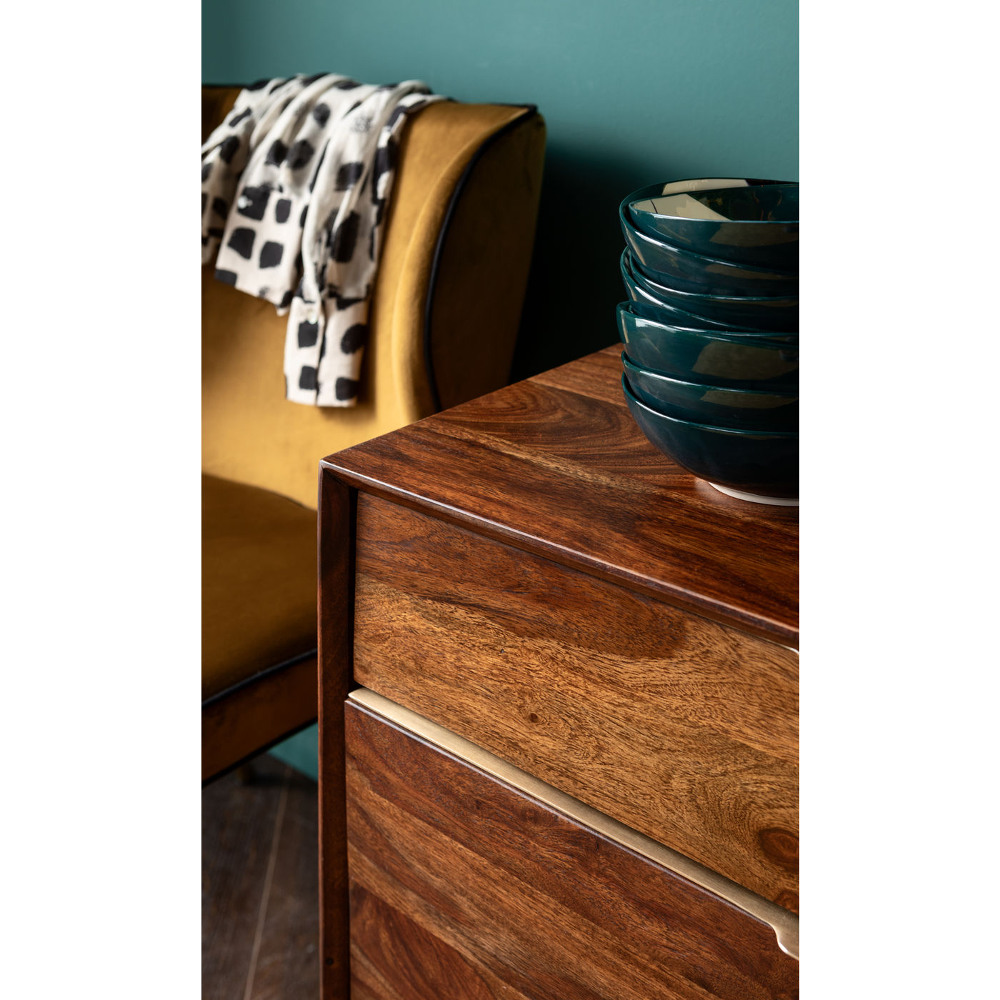 - Ausdrucksstark: Das auffällig gemaserte Sheesham-Holz ist härter als Eiche, sein Farbspiel variiert zwischen Goldgelb und Rotbraun