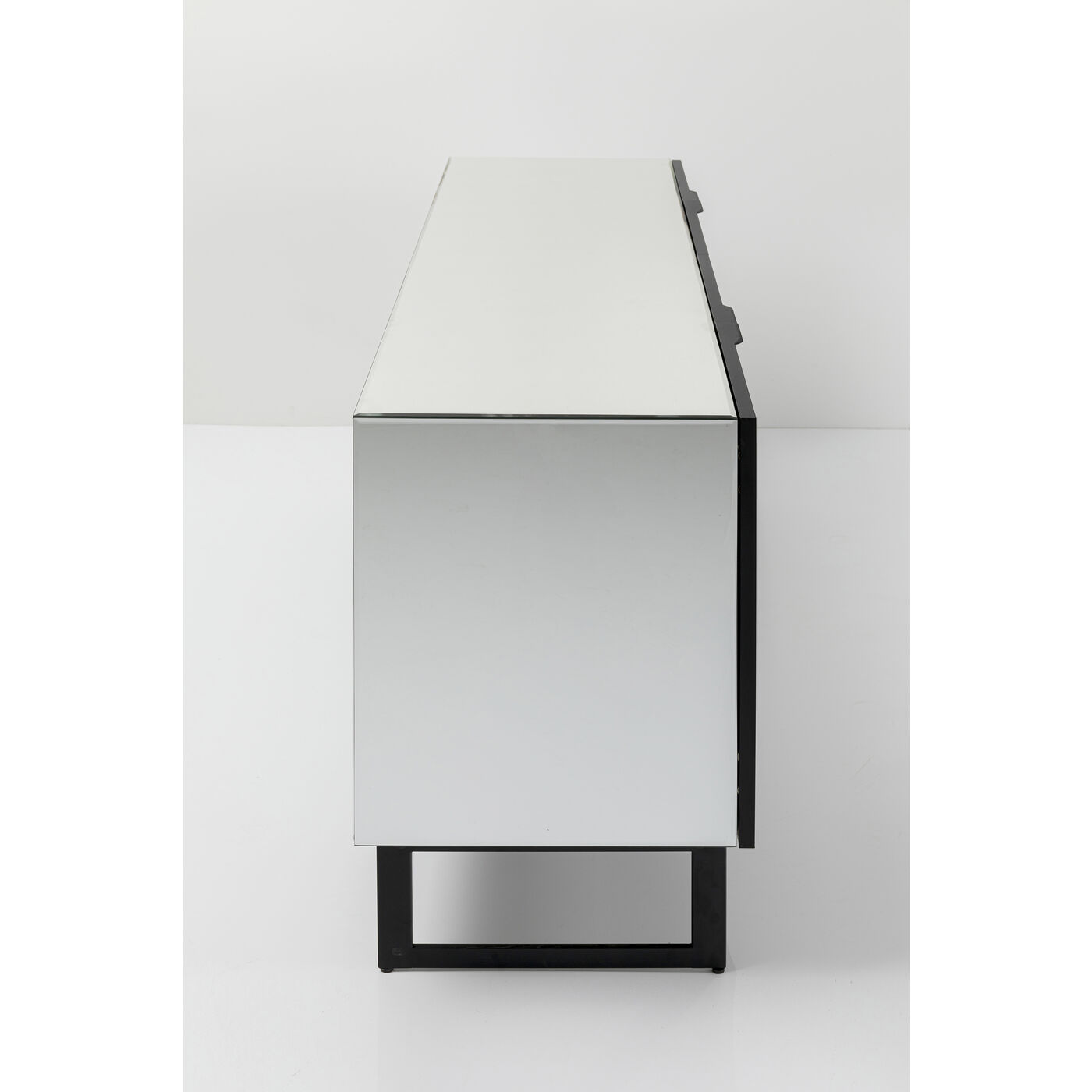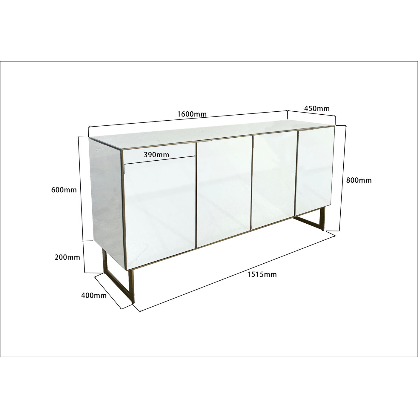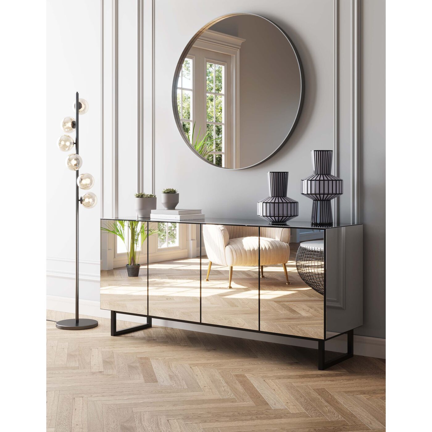 - Sideboard verspiegelt mit vier Türen, 80x160x45 cm (H/B/T) mit Beinen aus Metall in Schwarz