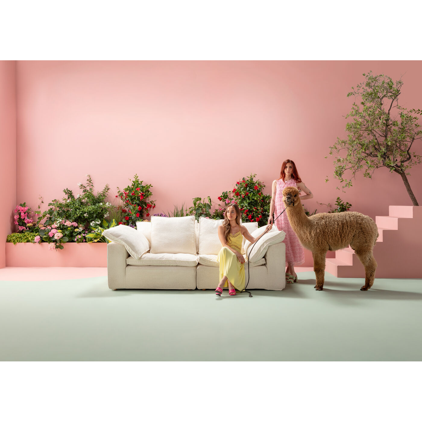 - Lässig und modern ist der Stil dieses bodentiefen 3-Sitzer Sofas mit dem leicht strukturierten, naturweißen Bezug