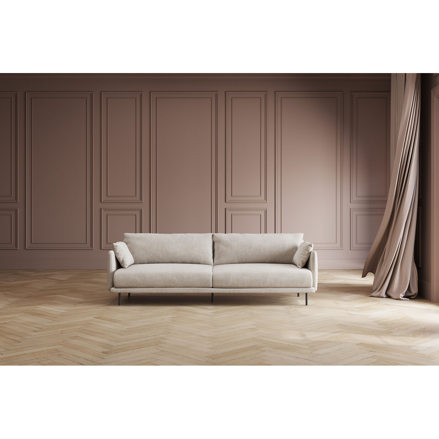 - Cremefarbenes 3-Sitzer-Sofa mit schwarzen Beinen, 245 cm breit, 85 x 245 x 110 Zentimeter (H/B/T)