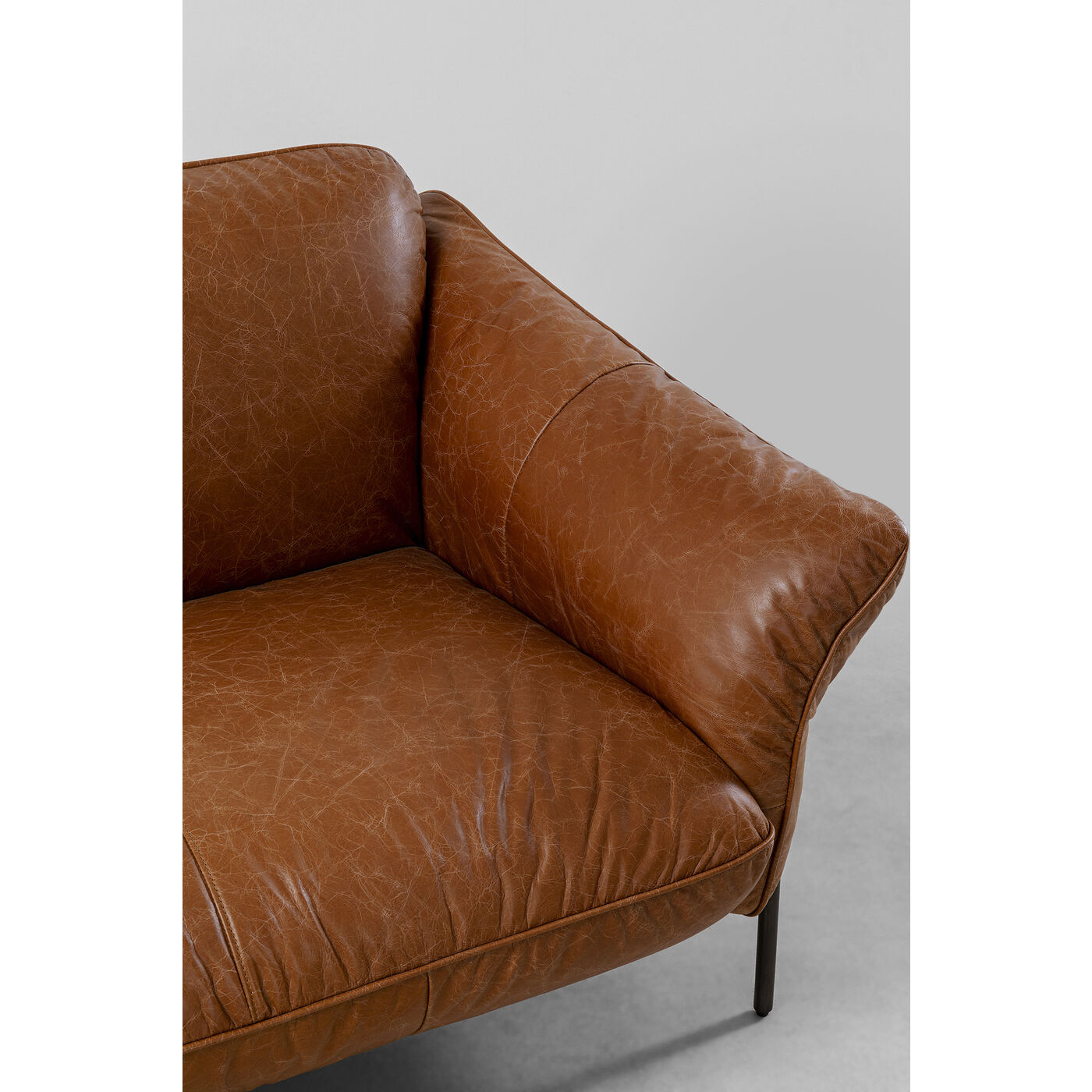 Dieses moderne Ledersofa hebt das Interieur Ihres Wohnzimmer auf das nächste Level. Das hochwertige, braune Ledersofa ist eine perfekte Ergänzung für jedes Wohnzimmer. Die Zwei-Sitzer Couch ist mit einer bequemen Polsterung, Nosagunterfederung und elastischer Gurtaufhängung versehen. Der Semi-Anilinlederbezug und die lackierten Stahlbeine verleihen dem Sofa eine zeitlose Eleganz. Mit einer maximalen Belastbarkeit von 480 kg ist es zudem stabil. Erleben Sie den Komfort und die Langlebigkeit eines Polstermöbels mit diesem Ledersofa in Braun.