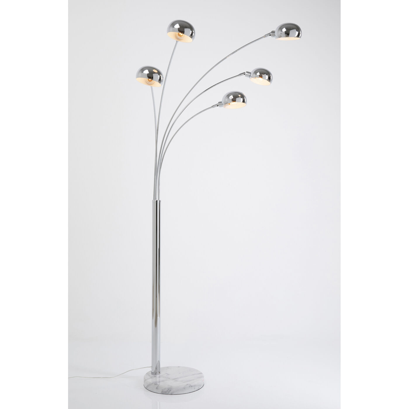 Ob im Büro, im Wohnzimmer oder Schlafzimmer - die Stehleuchte Five Fingers bringt Atmosphäre in den Raum. Das Gestell aus verchromtem Metall mündet in einen Keramikfuß aus echtem Marmor, der ihr Stil und optimale Stabilität verleiht. Aparte Lampenschirme geben das Licht sanft an den Raum ab. Als klassische Standleuchte, Lese- oder Arbeitslampe sorgt sie für eine angenehme Beleuchtung. 230 V, 50/60 Hz, Fassung E14, Anzahl Leuchtmittel 5, max. 25 Watt, Leuchtmittel nicht inklusive, Leuchtmittel austauschbar