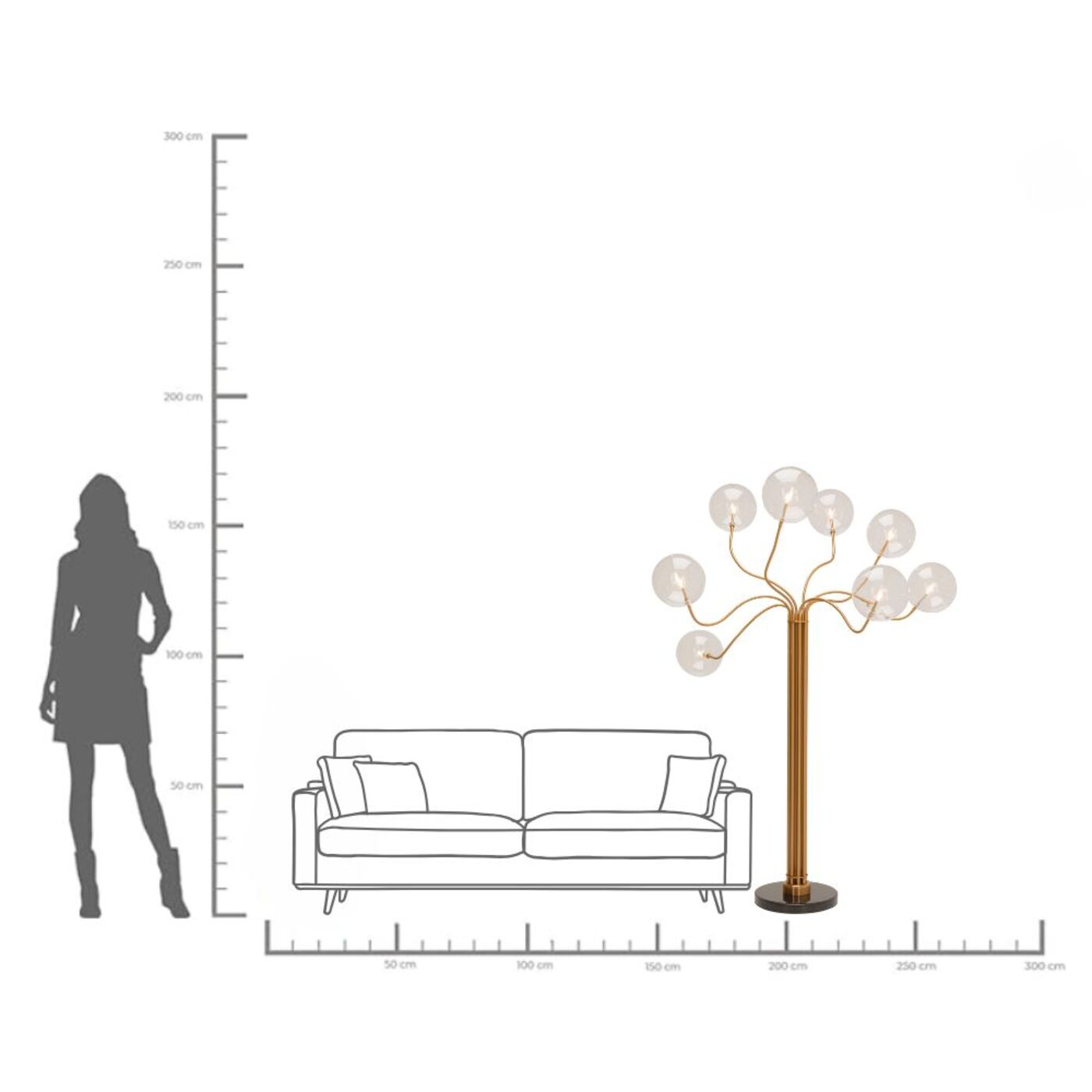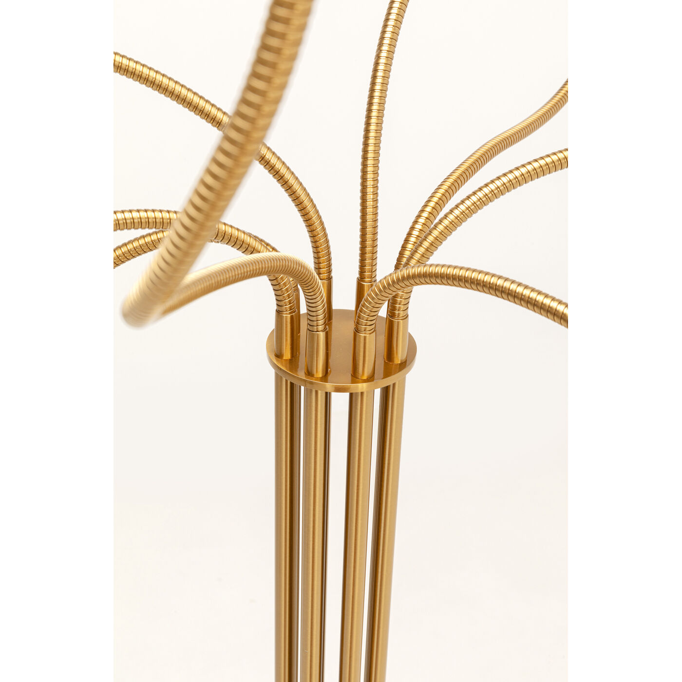 - Die Stehlampe wird mit ihrem kunstvoll geschwungenen Stahlgestell in Gold zum Highlight neben Sofa, Sessel oder im Flur
