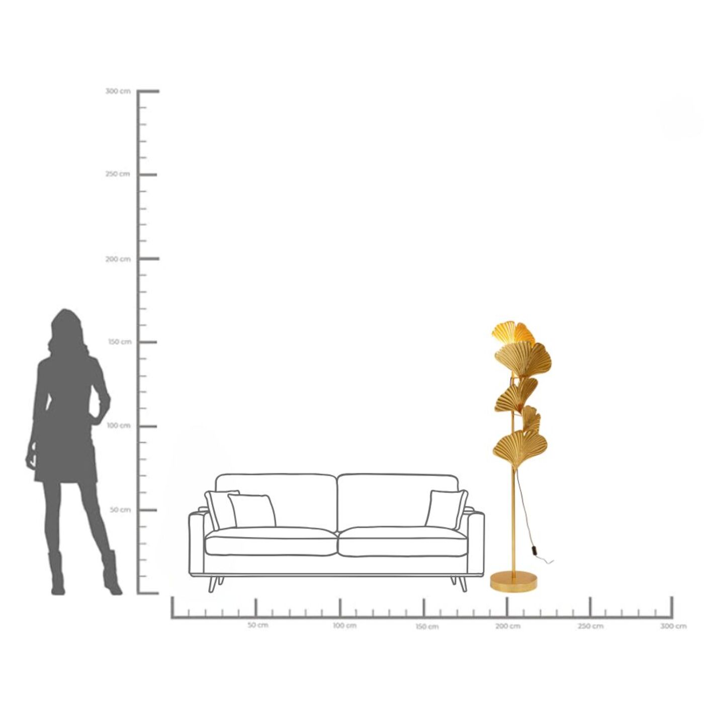 - Hohe Stehleuchte mit goldenen Leuchtenschirmen in Form von Ginkgo-Blättern