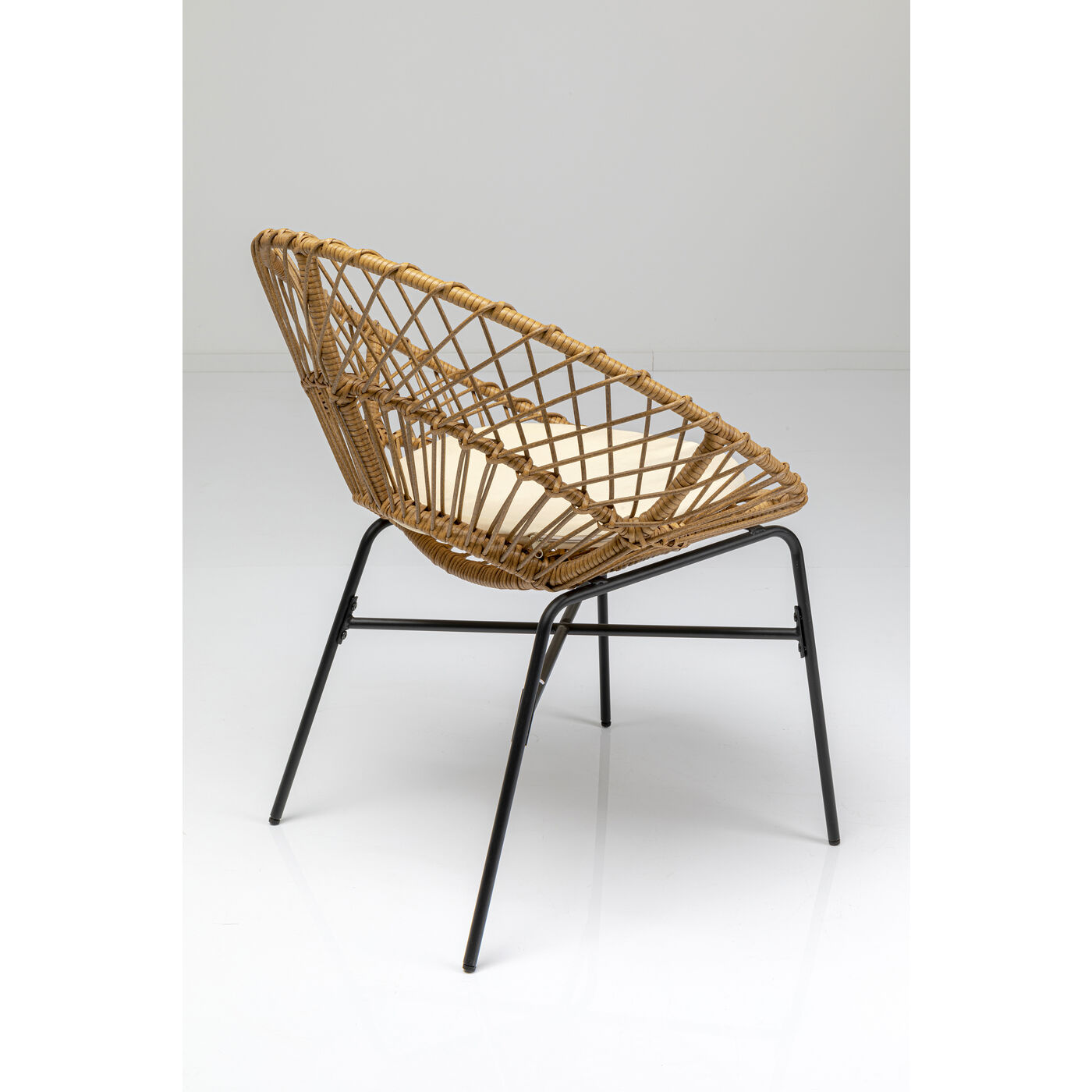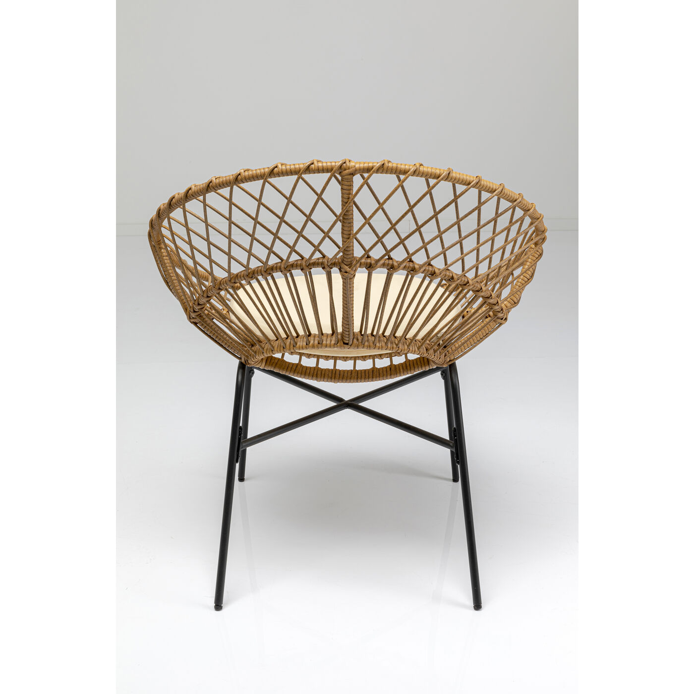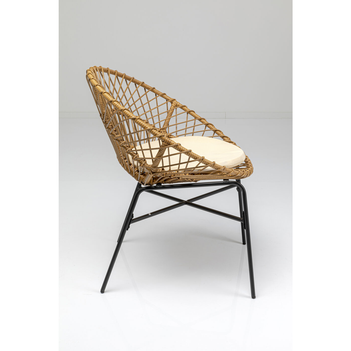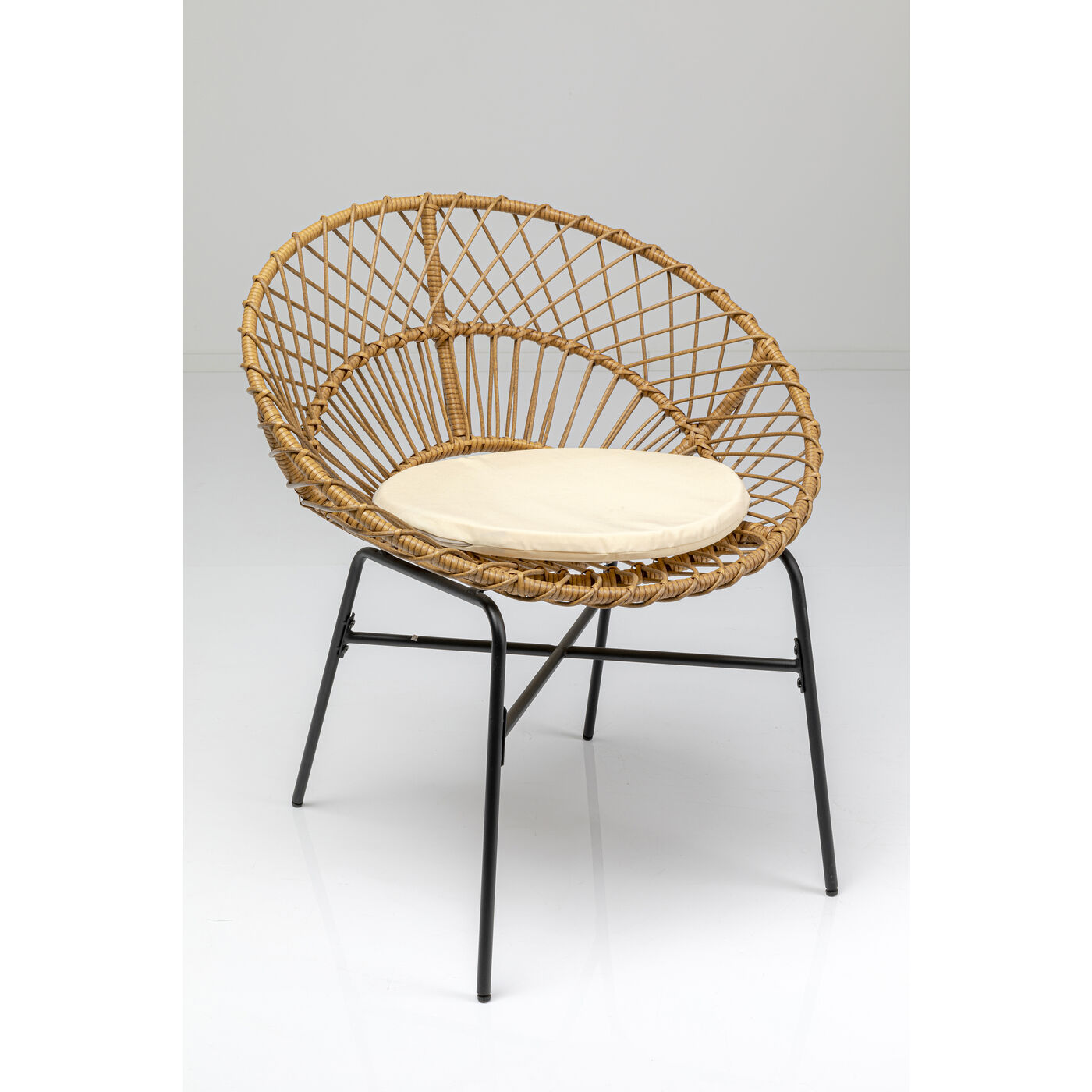 Rattanstühle verbreiten sofort lässige Vibes. Das Geflecht dieses Stuhls wurde aus langlebigem Polyethylen gefertigt. Sein Vorteil: Mit bunten Kissen strahlt der Stuhl im Ibiza-Stil sofort Urlaubsflair aus. Wenn die kühle Jahreszeit beginnt, machen Felle und kuschelige Kissen aus dem Flechtstuhl ein gemütliches warmes Nest. Bei der Nutzung als Gartenmöbel schützen Sie Bali bitte vor Feuchtigkeit.
