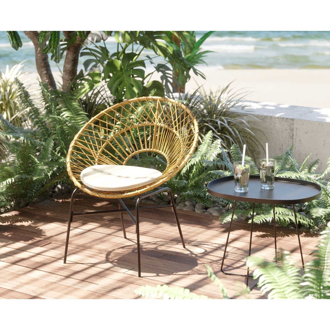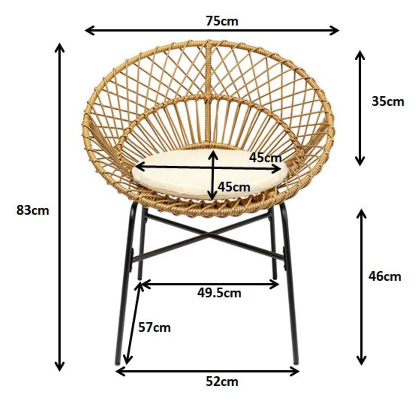 - Runder Korbstuhl in den Farben Natur und Schwarz mit Sitzkissen, 82.5 x 75 x 64 Zentimeter (H/B/T)