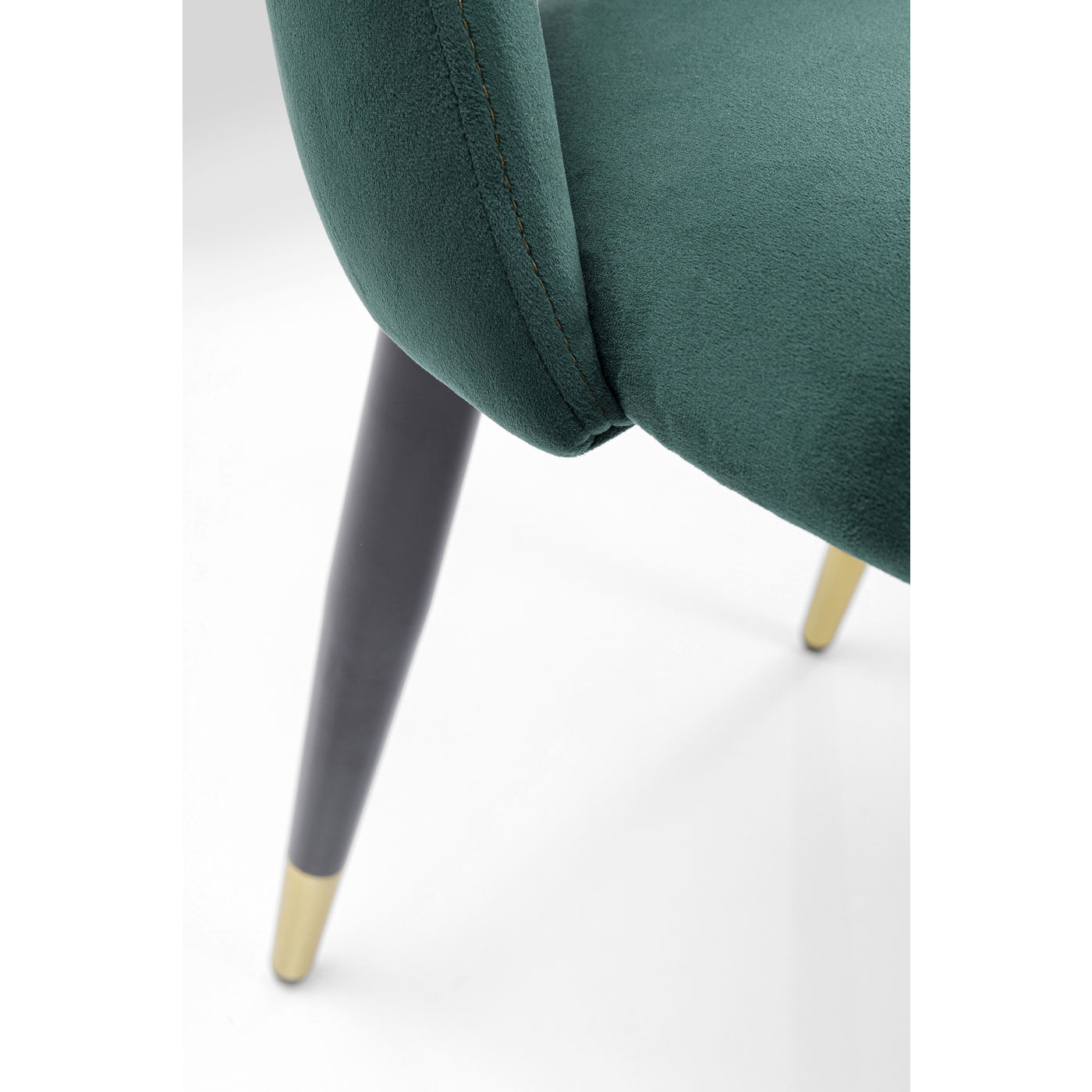 - Blickfänger mit Grandezza: Polsterstuhl mit schwarz lackierten Beinen und einem samtigen Bezug in der Trendfarbe Grün