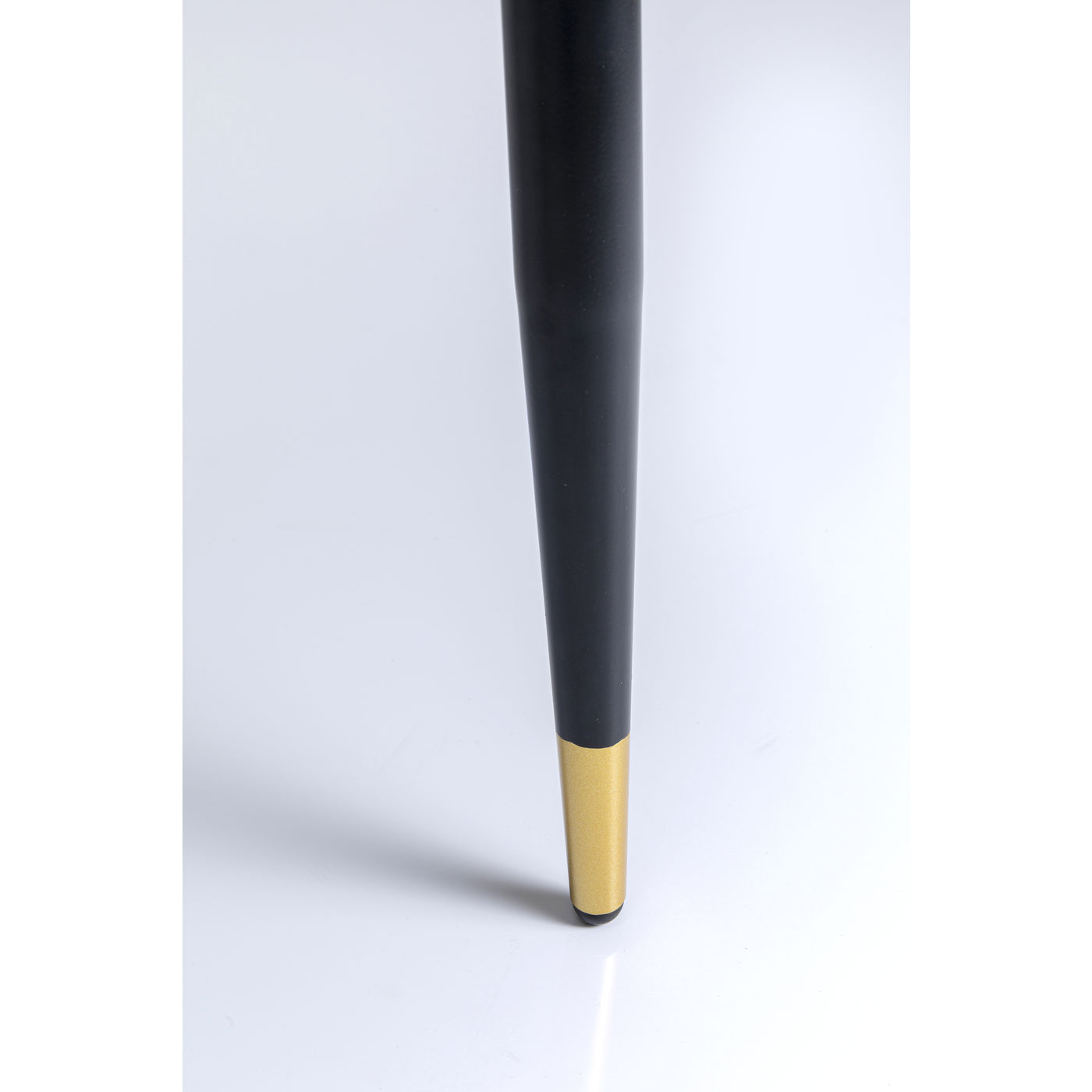 Der gekonnte Mix aus Form, Farbe und Material macht diesen Polsterstuhl zu einem besonderen Sitzmöbel. Seine schwarz lackierten Beine mit Goldmanschetten bilden einen charmanten Kontrast zu seinen Textilbezügen und zur flott geschnittenen Rückenlehne. Das Set aus zwei Stühlen ist ein ideales Starter-Paket für einen kleinen Essplatz, egal ob zu einem eckigen oder runden Tisch.