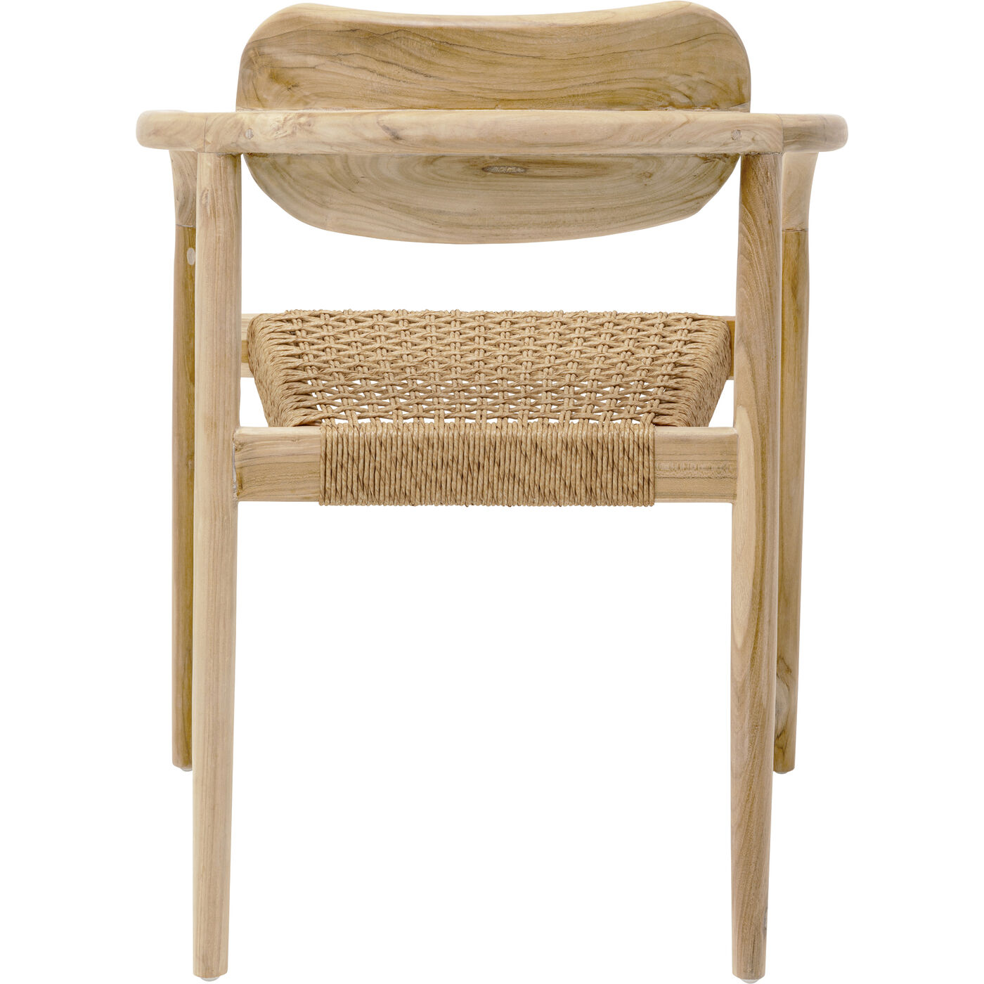 Ein Klassiker mit natürlichem Charme! Dieser Armlehnstuhl aus hochwertigem Teakholz bringt stilvolle Leichtigkeit in den Essbereich – drinnen wie draußen. Das luftige Flechtwerk schafft eine bequeme Sitzfläche, während die geschwungene Form für entspannten Komfort sorgt. Teakholz überzeugt nicht nur mit seiner warmen Ausstrahlung, sondern auch mit seiner Widerstandsfähigkeit gegenüber Witterungseinflüssen. Ob am großen Esstisch oder als einzelner Akzent auf der Terrasse – dieser Stuhl fügt sich harmonisch in jede Umgebung ein