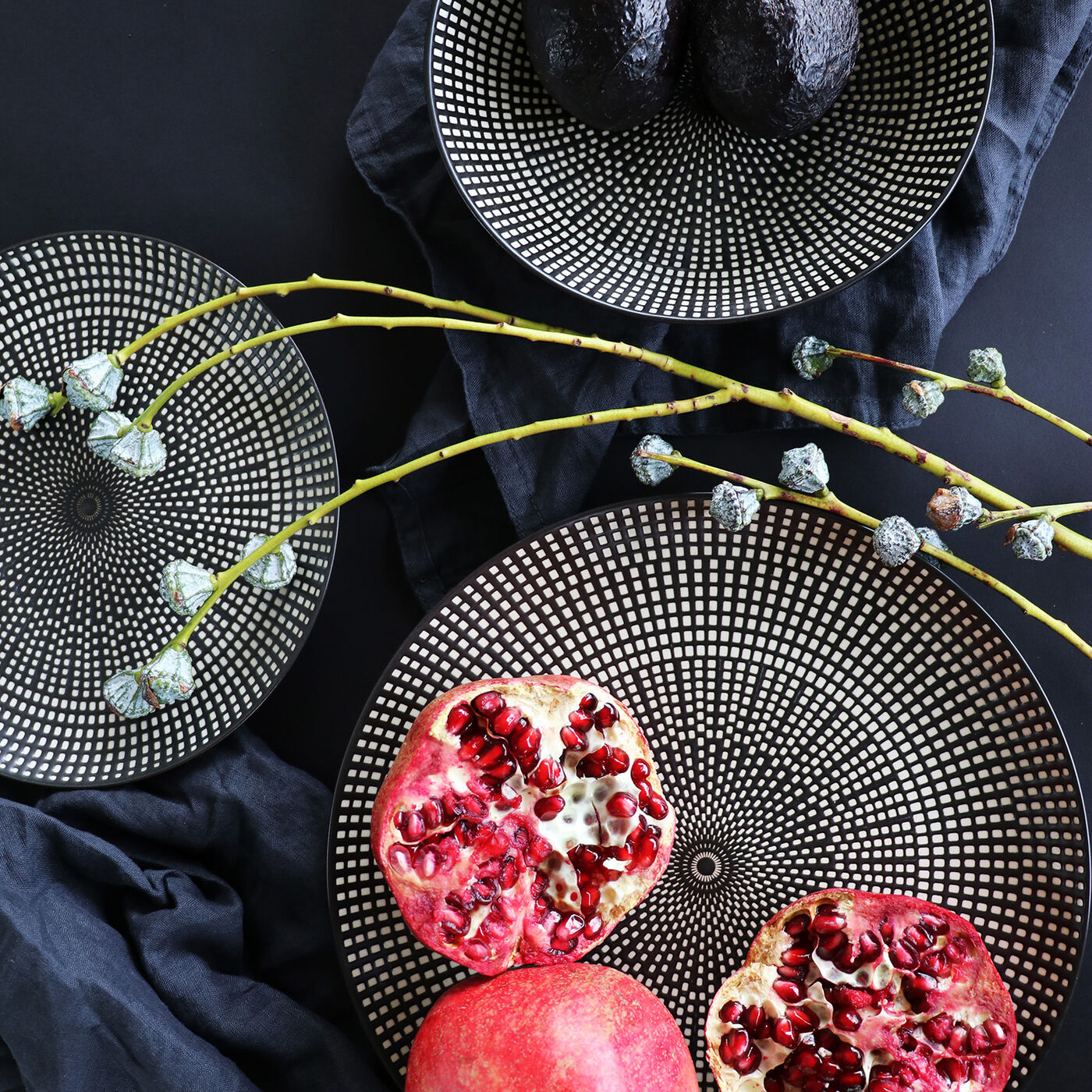 - Schwarz-weißer Speiseteller aus Porzellan mit dezentem Muster