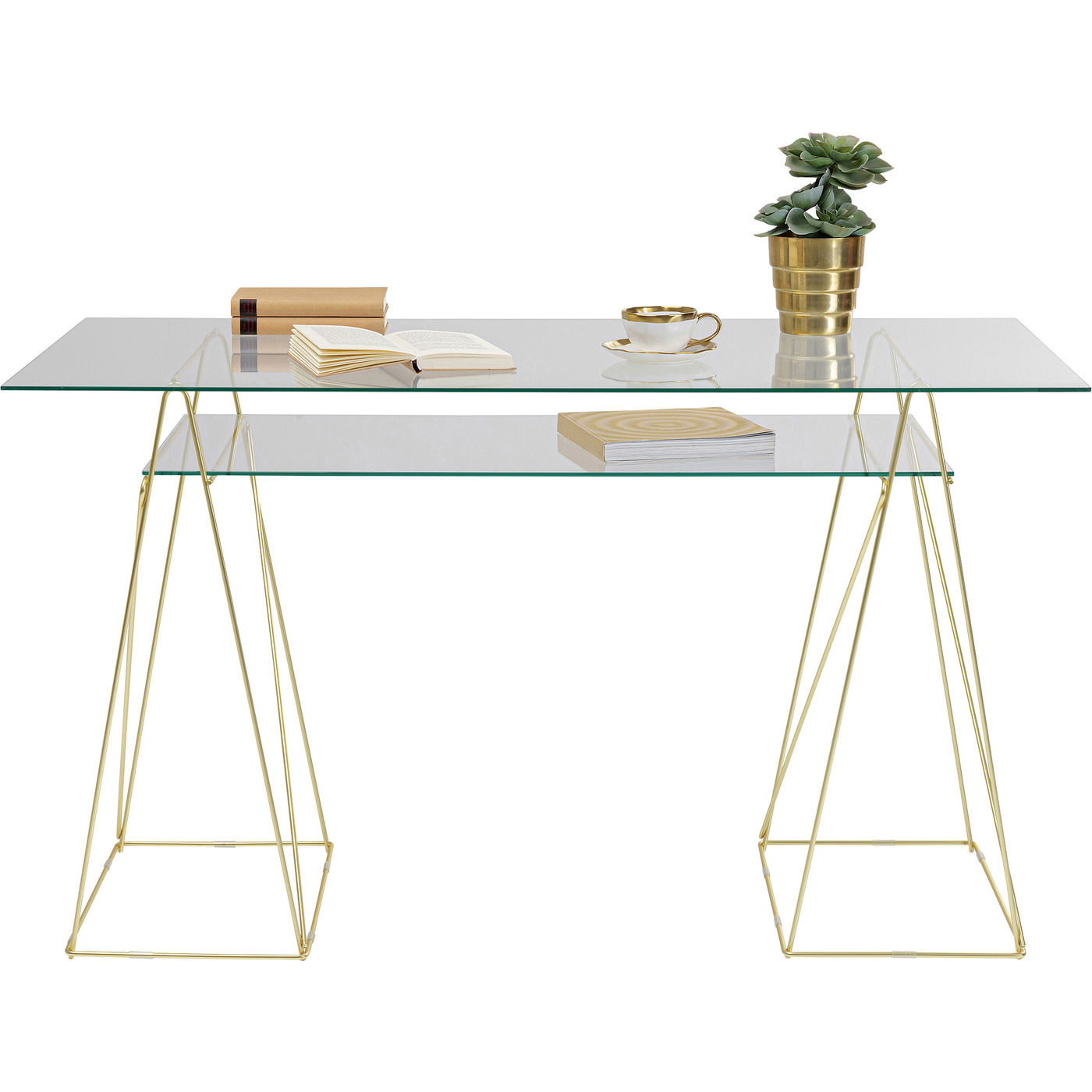 - Set aus zwei filigranen Tischböcken aus Stahl und mit Messing beschichtet