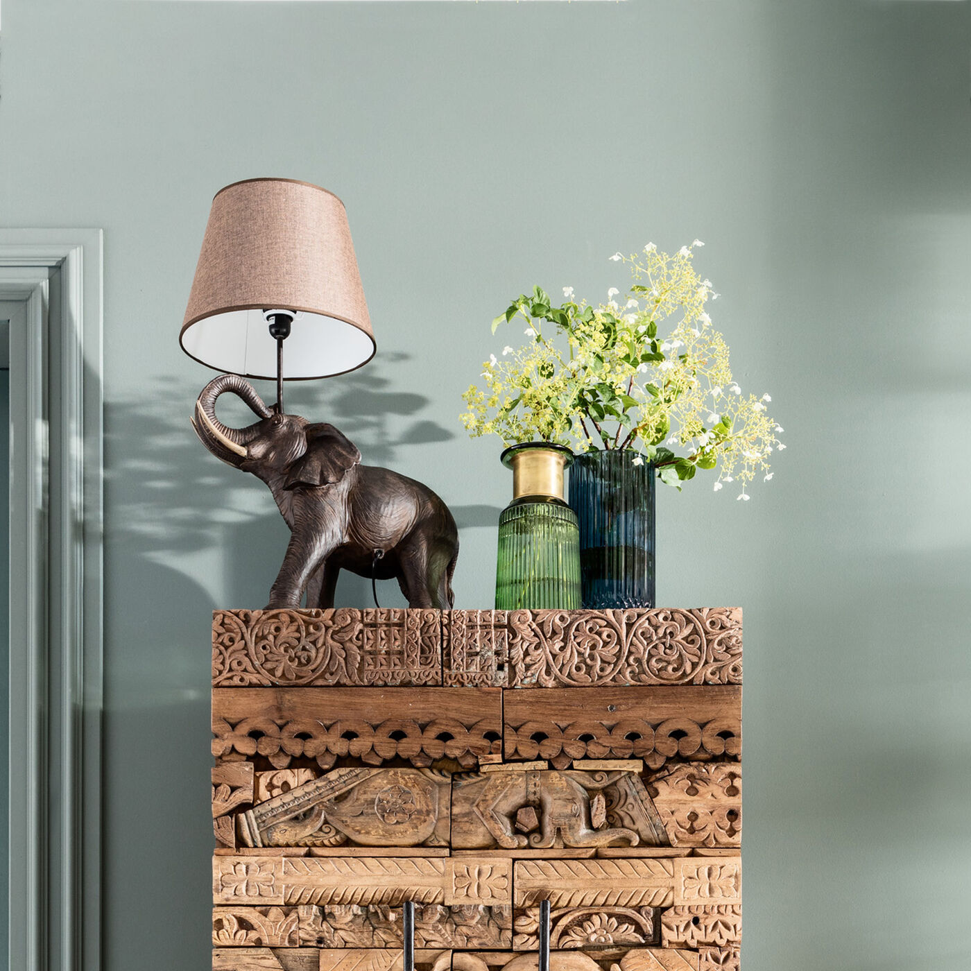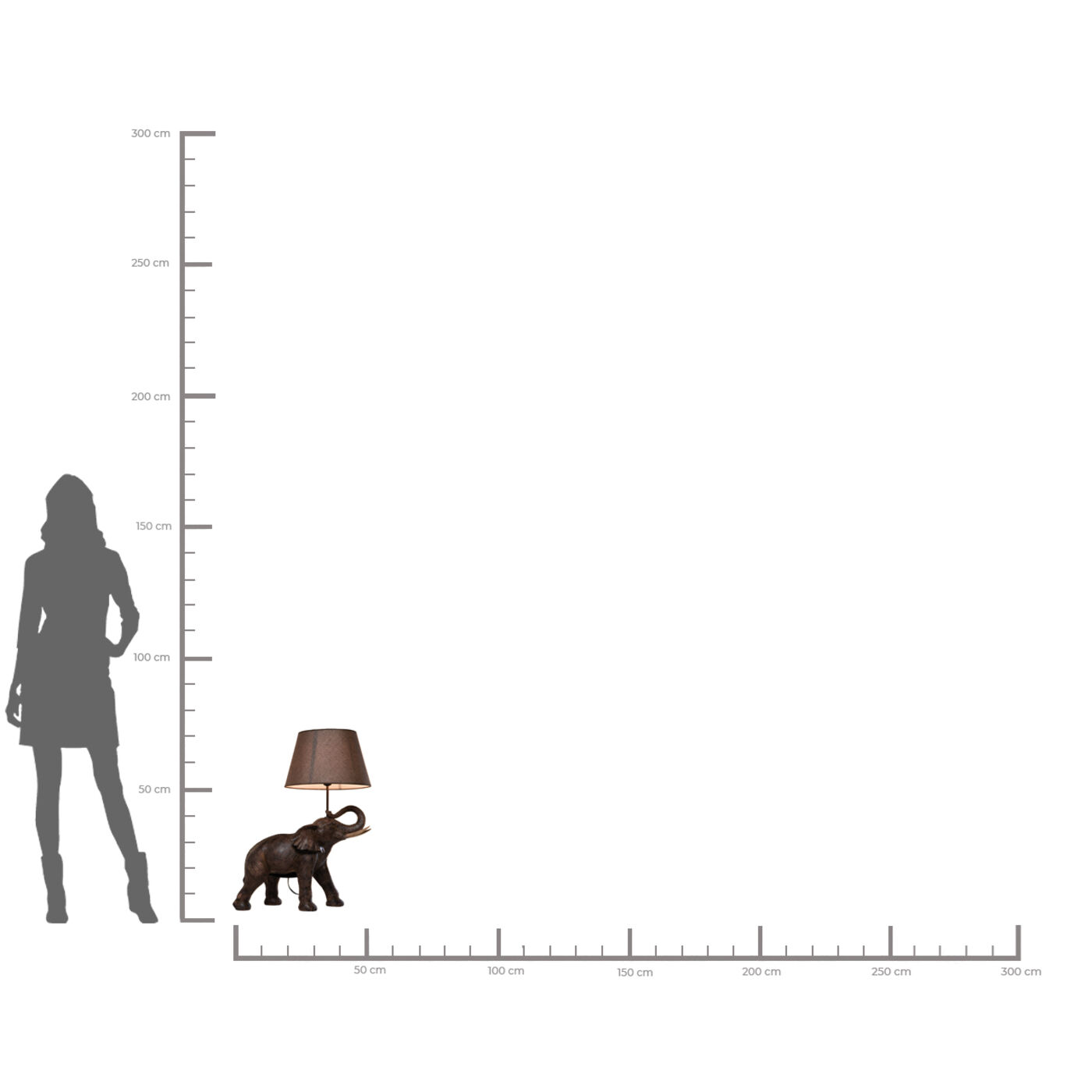 - Als Lampenfuß dient eine naturgetreu nachgebildete Elefanten-Figur aus Polyresin