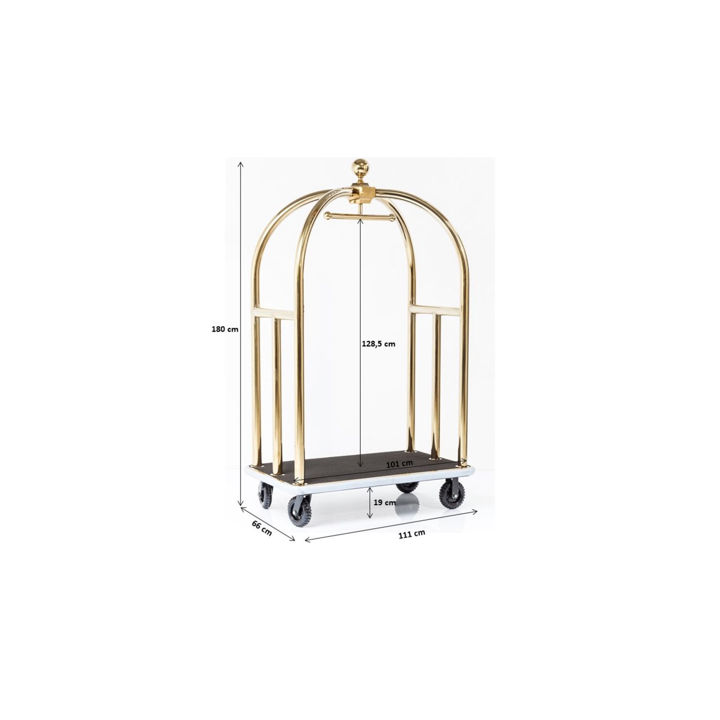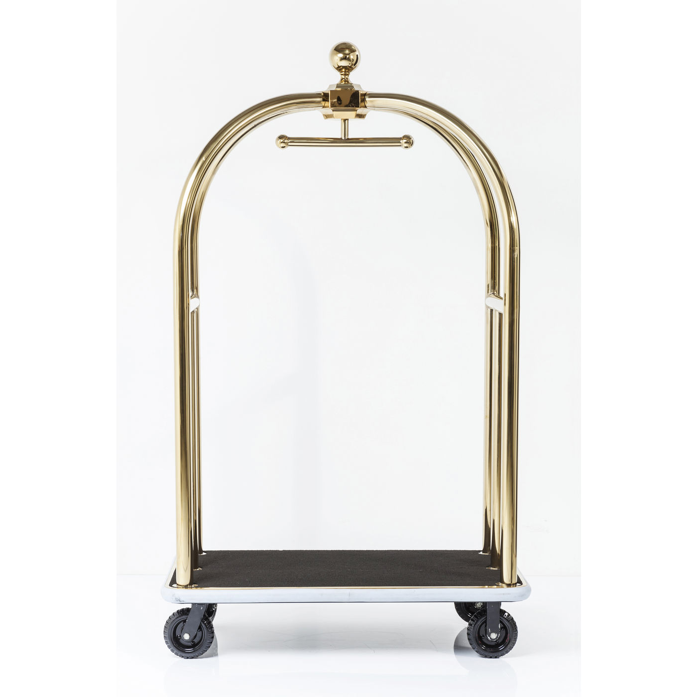 - Der gold-glänzende Kofferwagen sorgt für die luxuriöse Note im Ambiente