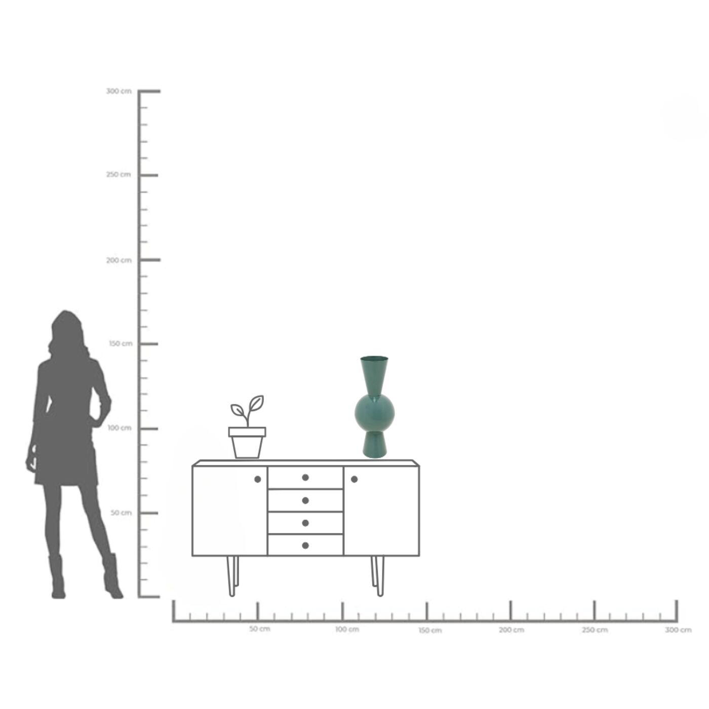- Dank ihrer großzügigen Maße und in sattem Petrol funktioniert die Vase als vielseitiges Wohnaccessoire