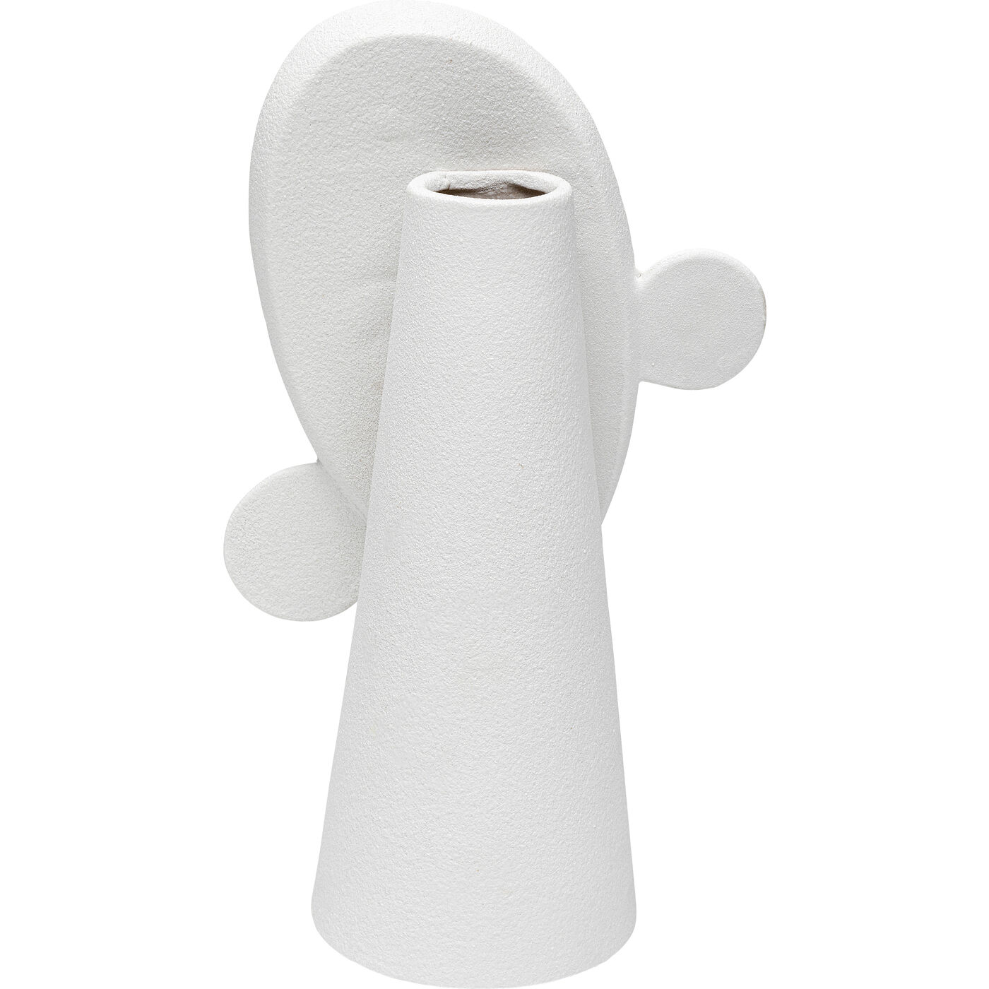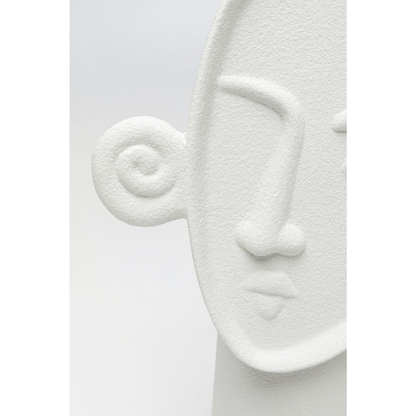 Diese weiße Keramikvase in Form eines abstrakten Gesichts ist ein echtes Kunstwerk, das jedes Interieur aufwertet. Mit ihrer einzigartigen Form wird sie zum Blickfang, die raue Oberfläche sorgt für einen modernen, zeitgemäßen Look. Ideal für kleine Sträuße oder Trockenblumen, bringt sie Frische und Charakter in jedes Ambiente. Besonders schön zur Geltung kommt sie auf einem minimalistischen Regal oder als Highlight auf einem Esstisch.
