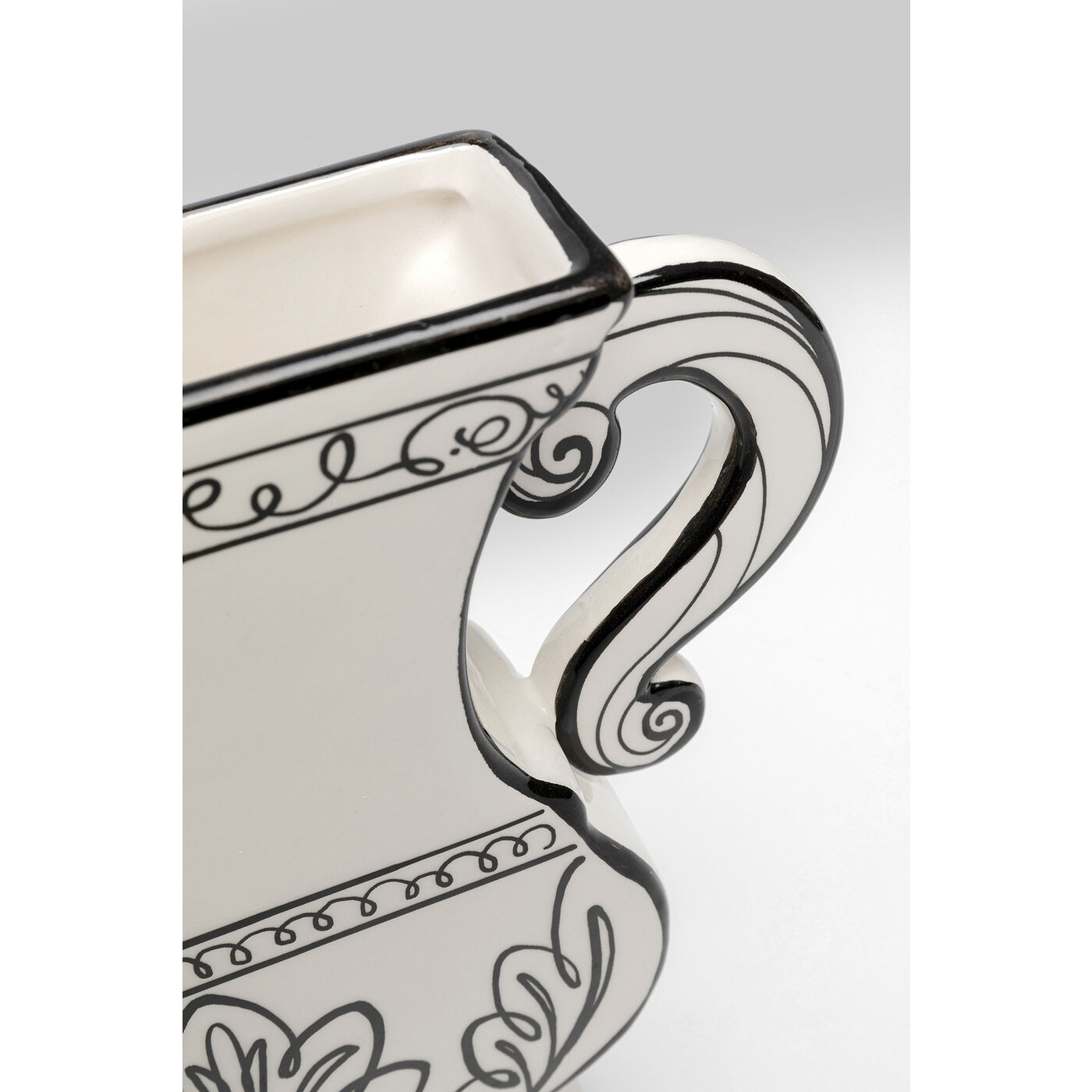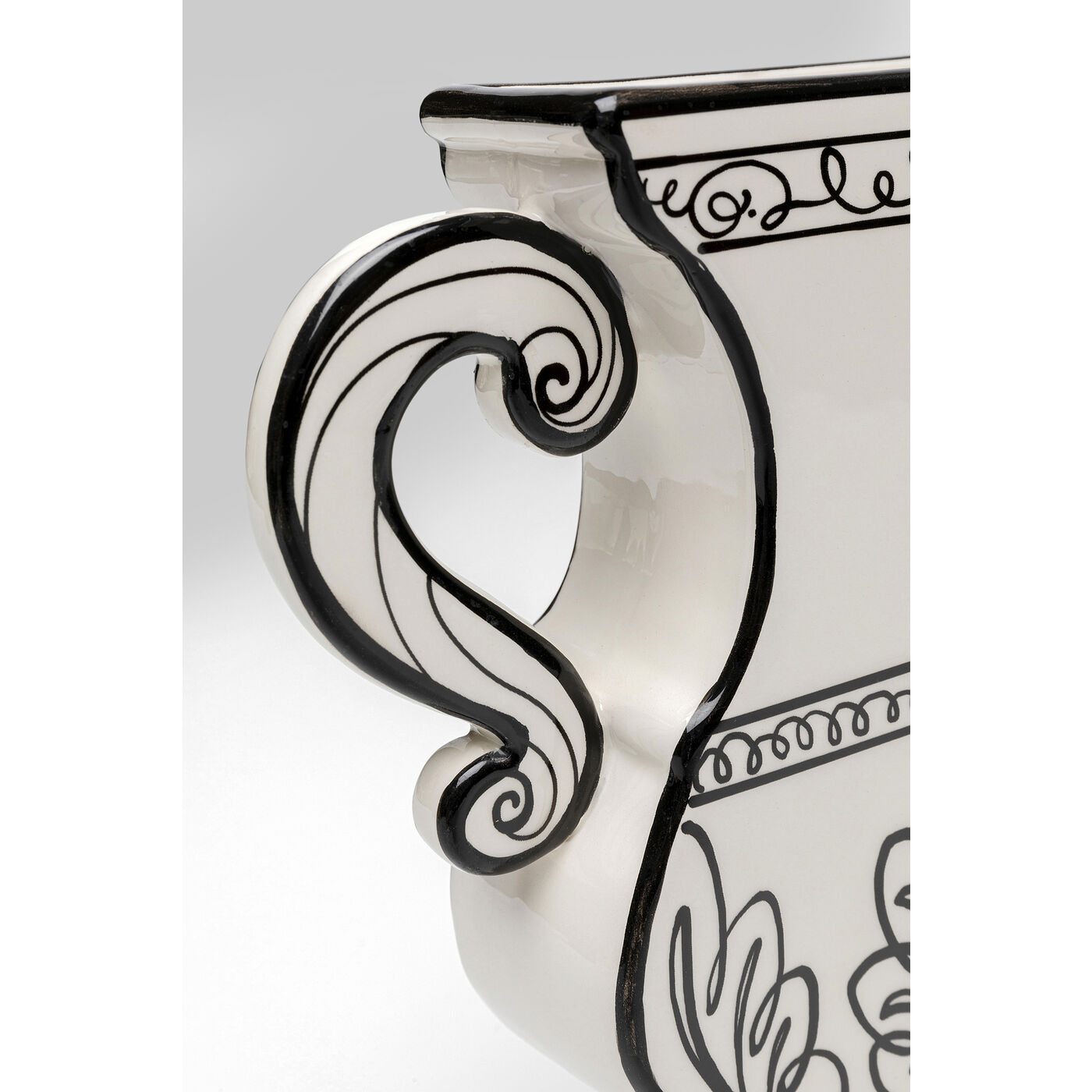 Die weiße Vase Favola ist nicht nur eine hervorragende Ergänzung für Ihr Interieur, sondern auch ein funktionaler Gegenstand. Sie bietet Platz für frische Blumen, Zweige oder andere dekorative Arrangements und kann auf jedem Tisch, Regal oder Fensterbank platziert werden. Mit ihrem einzigartigen Design und den handgemalten schwarzen Linien zieht sie alle Blicke auf sich und sorgt für eine besondere Note in Ihrem Zuhause.