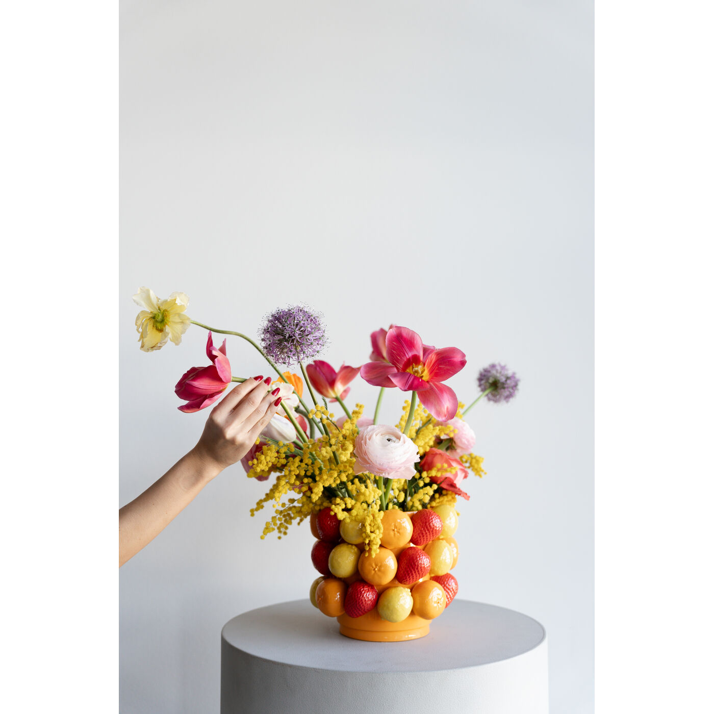 - Diese Blumenvase überzeugt durch detailreiche 3D-Applikationen in Form von Zitronen, Erdbeeren und Orangen