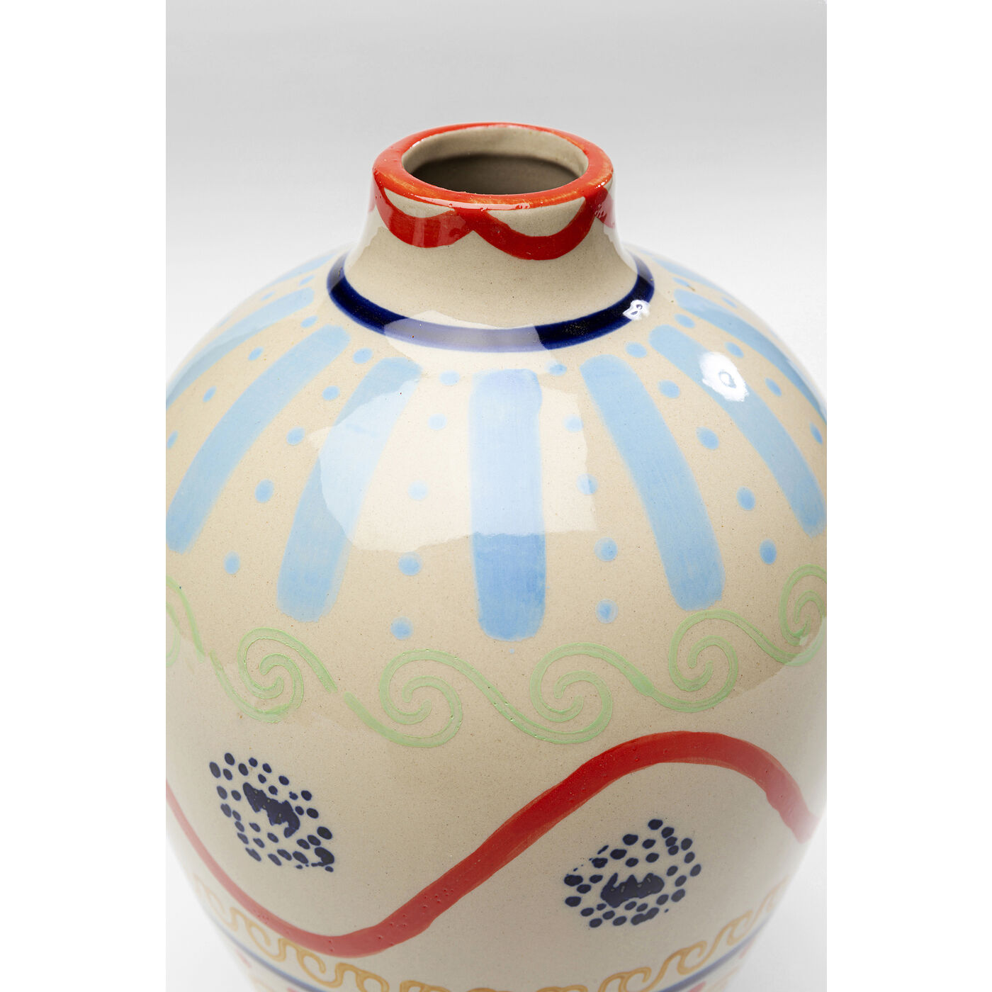 - Bauchige Blumenvase mit schmaler Öffnung und buntem Muster, 26 x 17 x 17 Zentimeter (H/B/T)