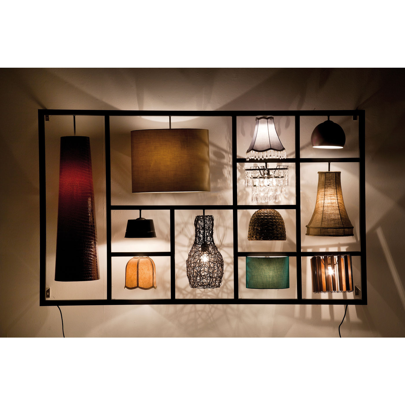 Die große Wandlampe Parecchi bewegt sich als Wohn-Accessoire zwischen Lampe und Leuchtobjekt. Die in ihren Maßen imposante Wandleuchte schmückt kahle Wände oder macht den Flur zur stilvollen Visitenkarte des Hauses. 12 individuelle Lampenschirme ziehen die Blicke auf sich und tauchen den Raum in geheimnisvolles Licht. Raffiniert ist das Zusammenspiel der unterschiedlichen Materialien der Lampenschirme, angefangen bei Leinen, Baumwolle, Rattan bis hin zu Kunstleder und Holz. Der Stilmix bei dieser Lampe erlaubt es, sie in jeden modernen Wohnstil zu integrieren, ob modern, klassisch oder um eine Vintage-Note einzubringen. Die Wandleuchte spendet angenehmes, warmes Licht und setzt mit ihrem ungewöhnlichen Design kunstvolle Akzente. Zum Teil lassen sich die Lampenschirme untereinander tauschen, so dass Sie Ihre ganz individuelle Leuchte gestalten können. 230 V, 50/60 Hz, Fassung E27, Anzahl Leuchtmittel 12, max. 25 Watt, Leuchtmittel nicht inklusive, Leuchtmittel austauschbar