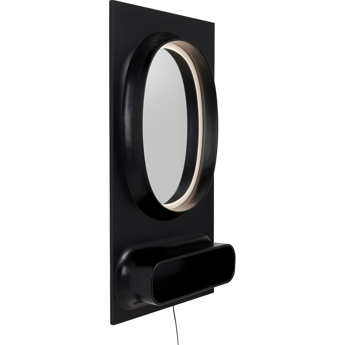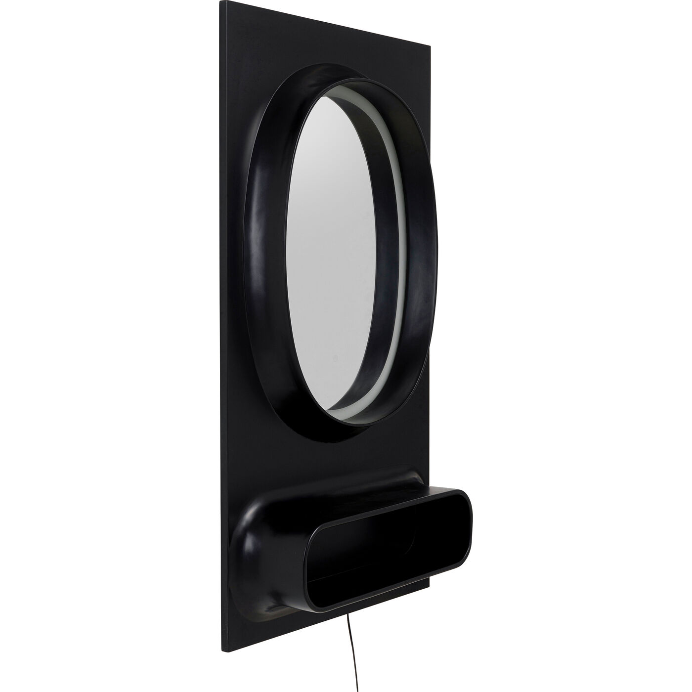 Die Kollektion „Fluid Realities“ entspringt der exklusiven Kooperation von KARE mit dem renommierten Stardesigner Karim Rashid. Mit seiner einzigartigen Designsprache und visionären Ästhetik schafft er Möbel und Leuchten, die sowohl futuristisch als auch funktional sind. Der markante Wandspiegel mit einer stilvollen Ablage in Schwarz setzt ein kraftvolles Design-Statement und bringt Farbe und Dynamik in jedes Interieur. Dank der integrierten LED-Beleuchtung sorgt der Spiegel für perfekte Lichtakzente – ideal für moderne Räume, die sowohl funktional als auch ästhetisch überzeugen sollen.