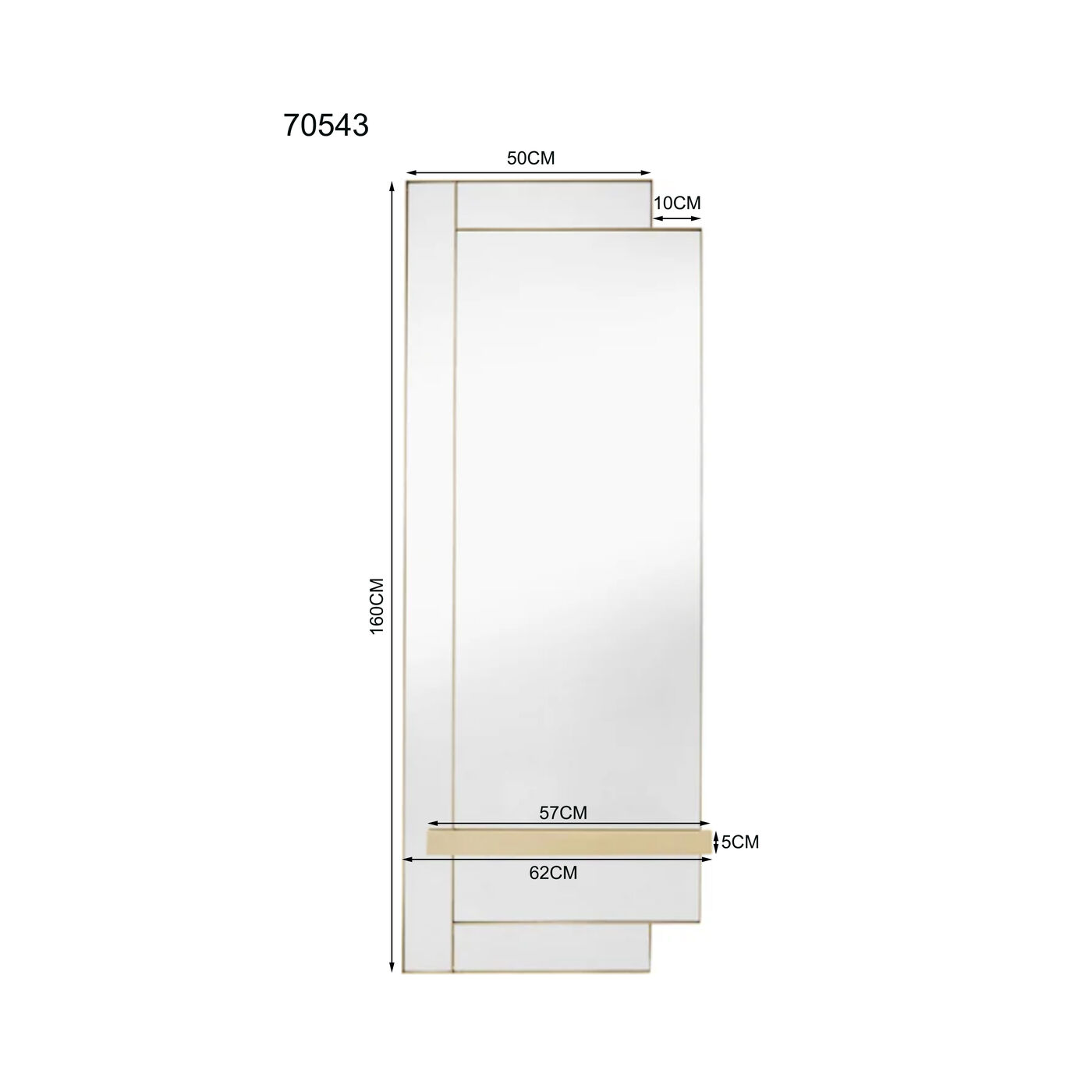- Hoher Wandspiegel mit geometrischen Details in Gold, 160 x 60 x 3 Zentimeter (H/B/T)