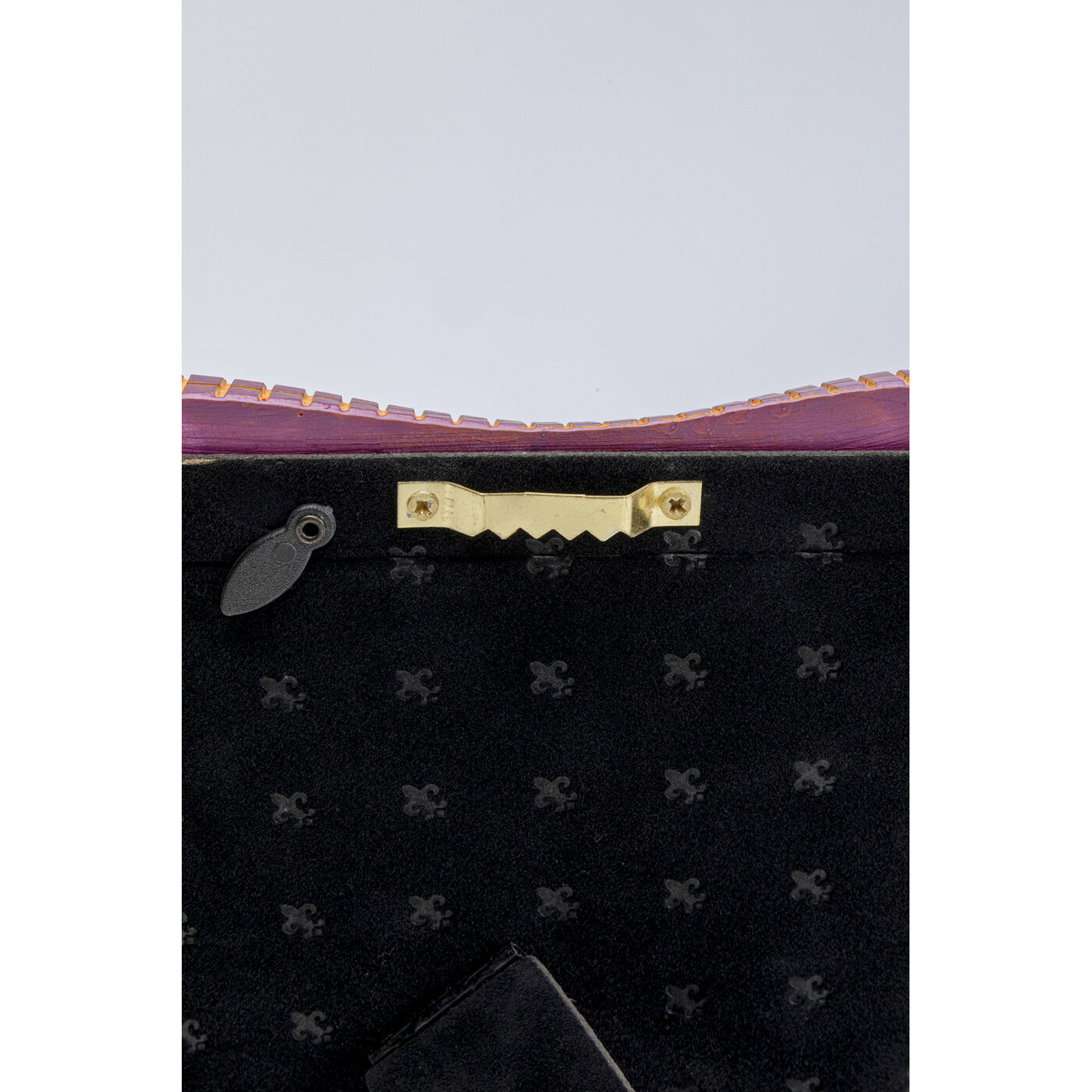 - Der Rahmen begeistert mit seiner organischen Form und kontrastreichen, karierten Strukturen in sattem Orange und Lila