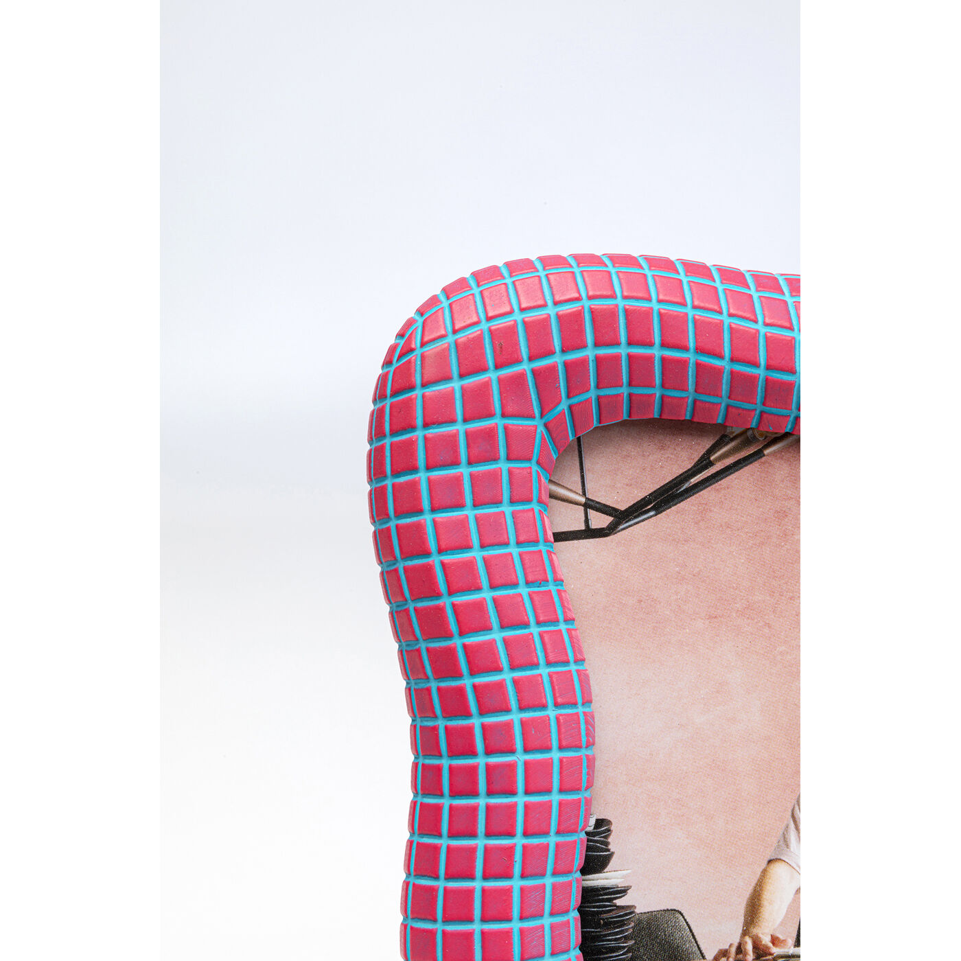 Ein kleines Design-Highlight mit großer Wirkung: Dieser Bilderrahmen setzt mit seiner schwungvollen Linienführung und dem farbenfrohen Karomuster spielerische Akzente. Die Kombination aus sattem Pink und zartem Blau sorgt für frischen Wind in jedem Interior und bringt Persönlichkeit auf Kommoden, Regale oder Nachttische. Ideal, um Lieblingsfotos, Illustrationen oder Postkarten in Szene zu setzen – einzeln oder als Teil einer bunt gemixten Bildergruppe. Besonders wirkungsvoll in cleanen Umgebungen, wo der Rahmen als farbenfroher Eyecatcher glänzt. Ein charmantes Accessoire, das Kunst und Stil gekonnt in Einklang bringt.