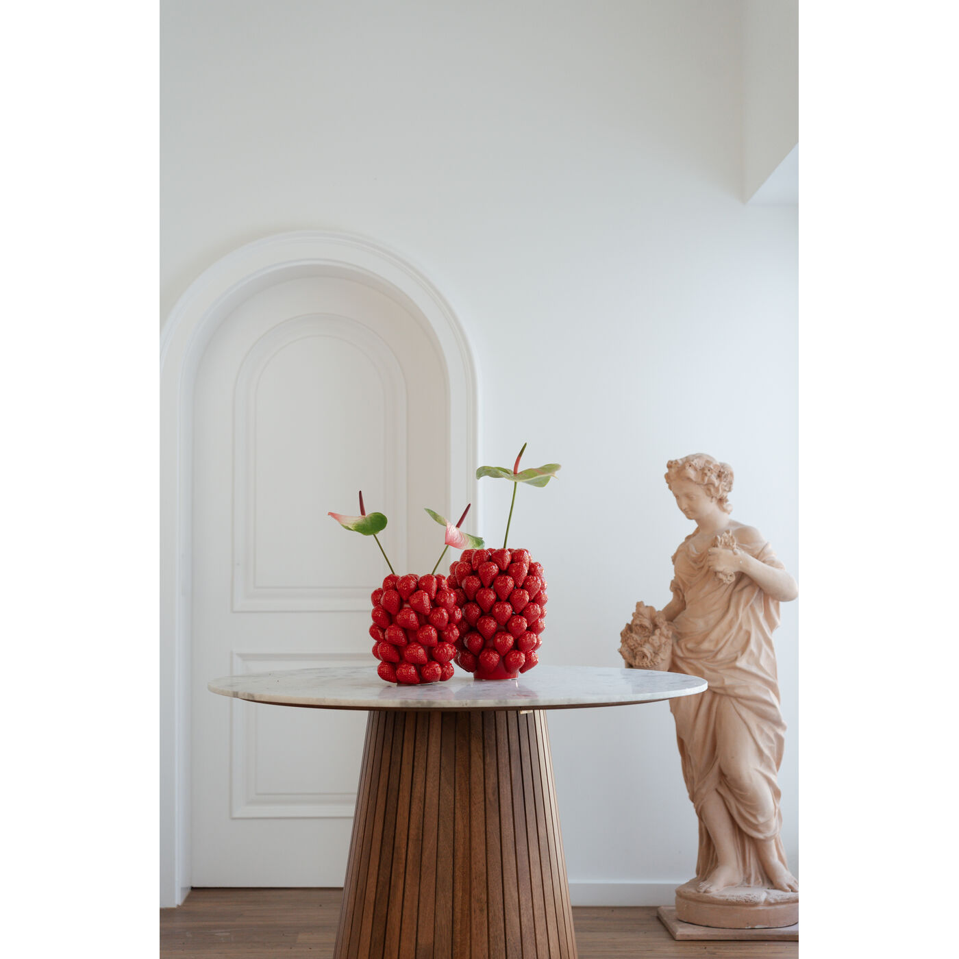 - Rote Blumenvase mit Erdbeer-Dekor 30 x 25 x 25 Zentimeter (H/B/T)