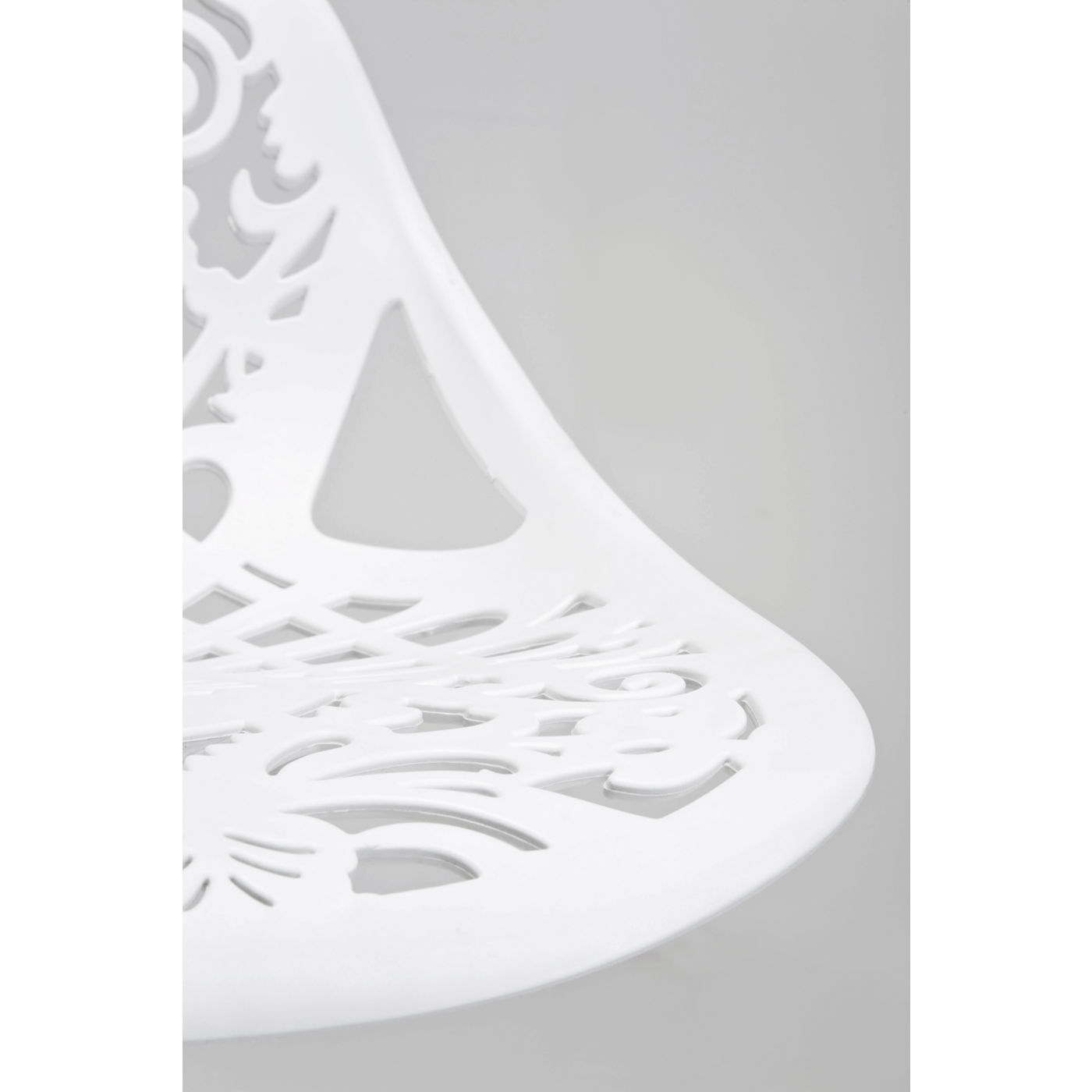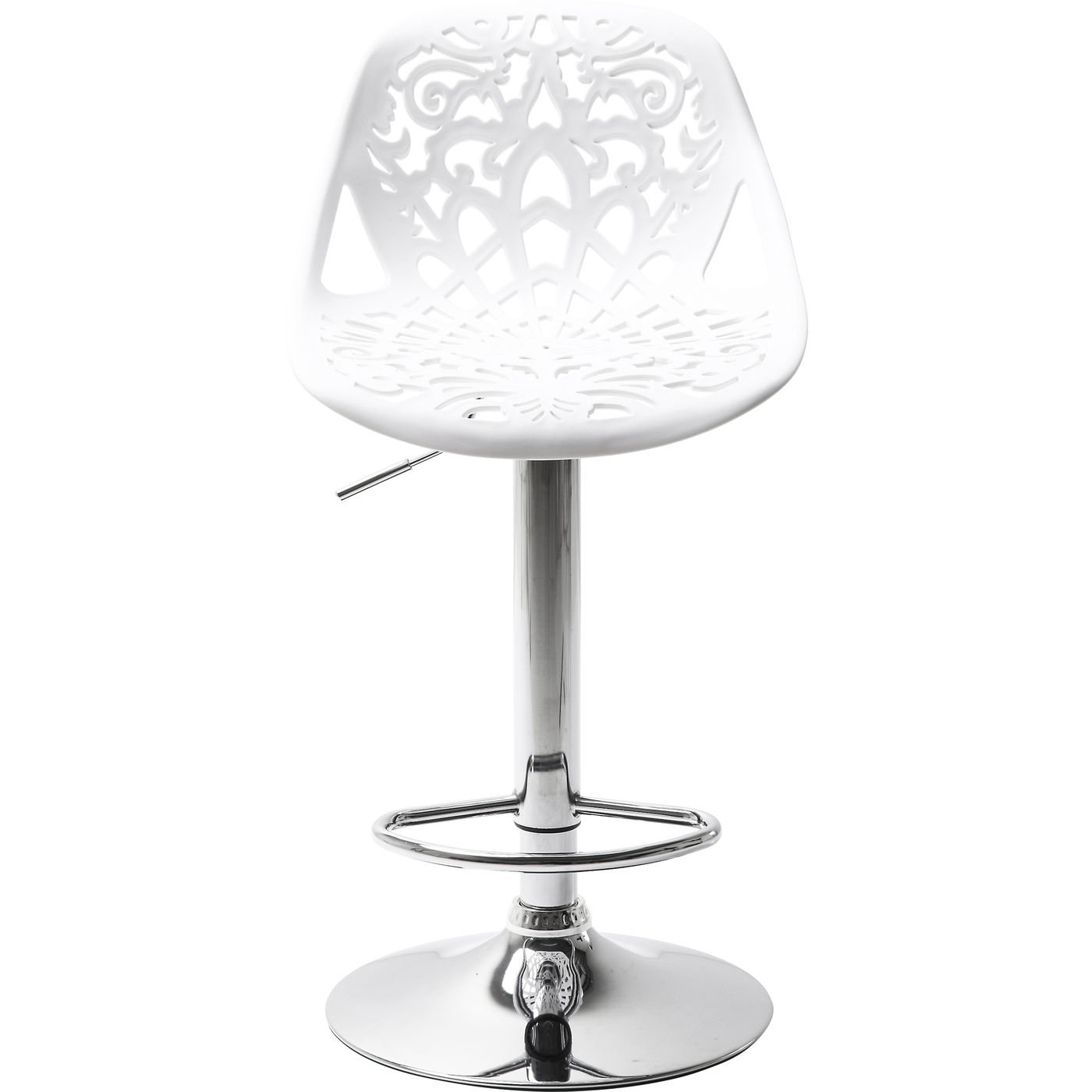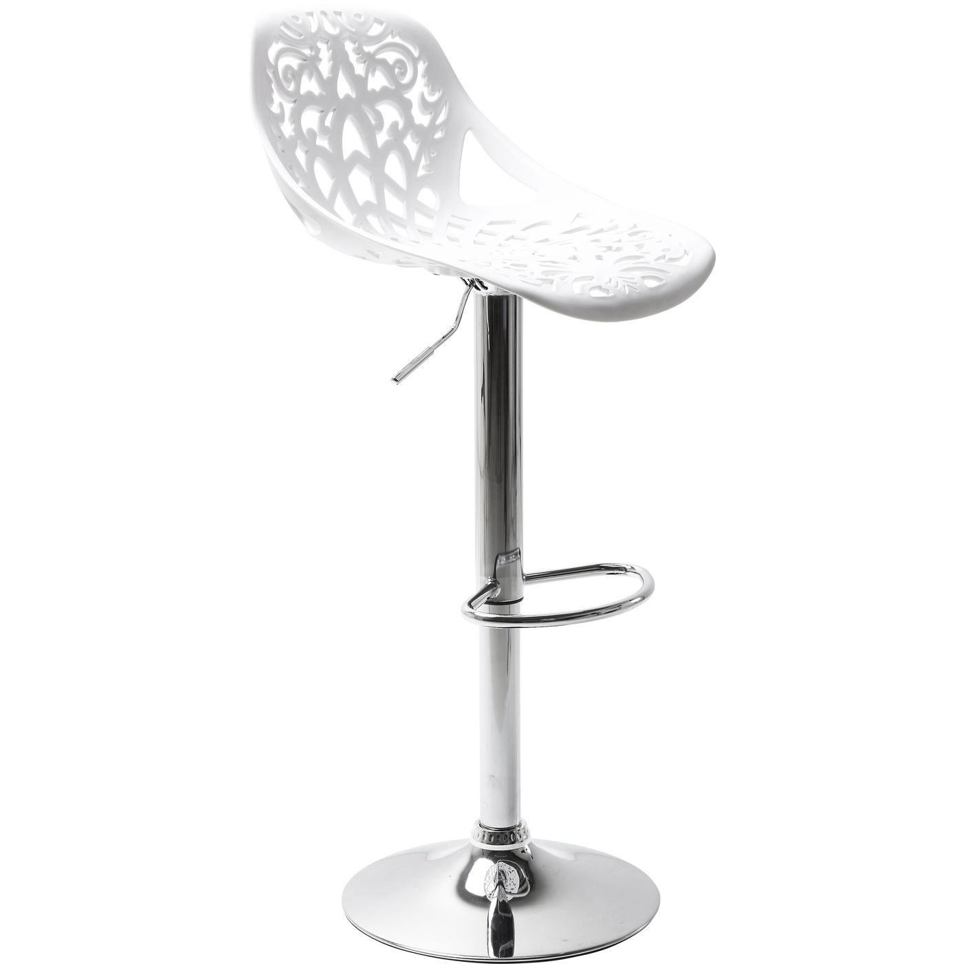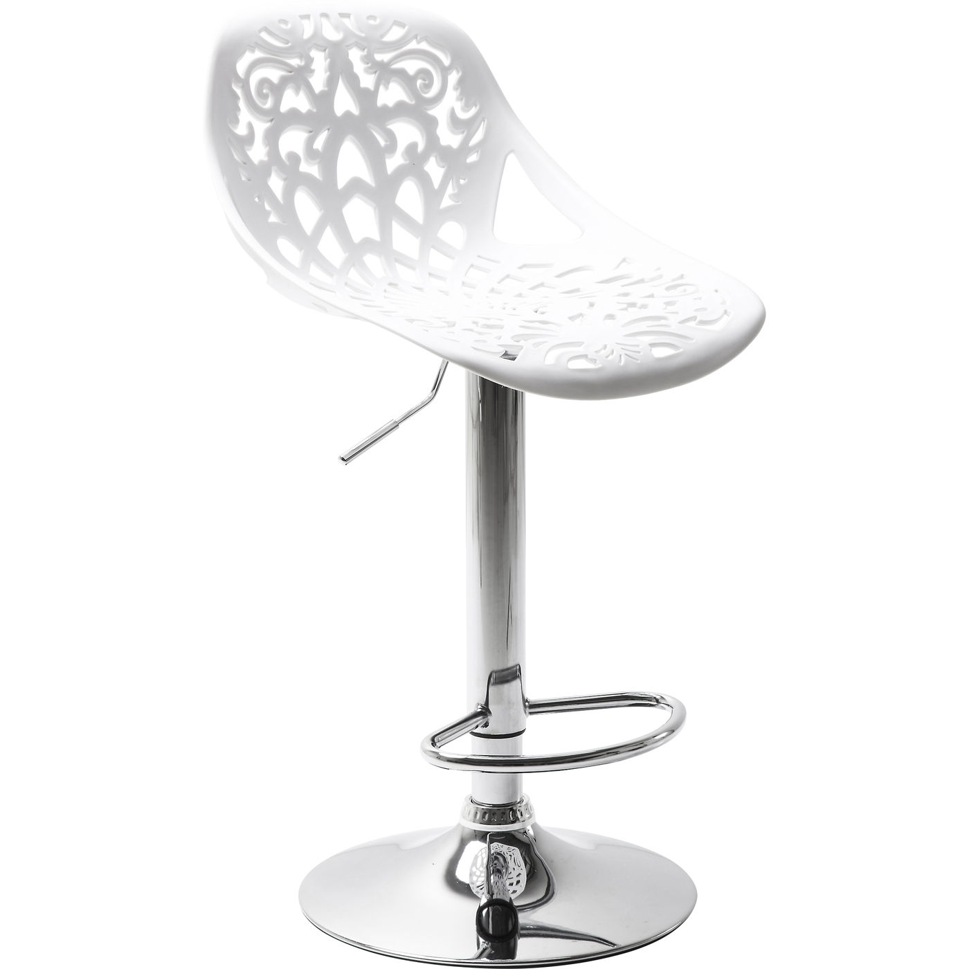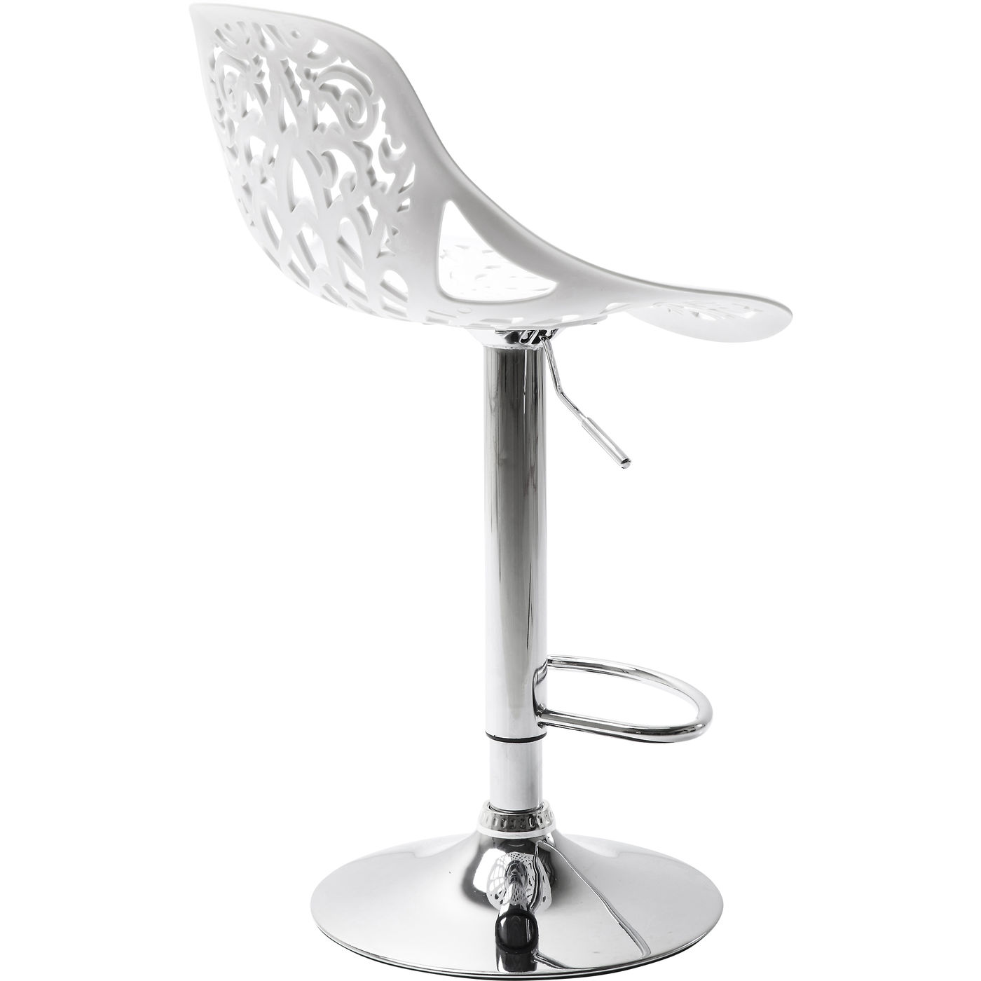- The ergonomically shaped seat shell of the bar stool in white ensures seating comfort