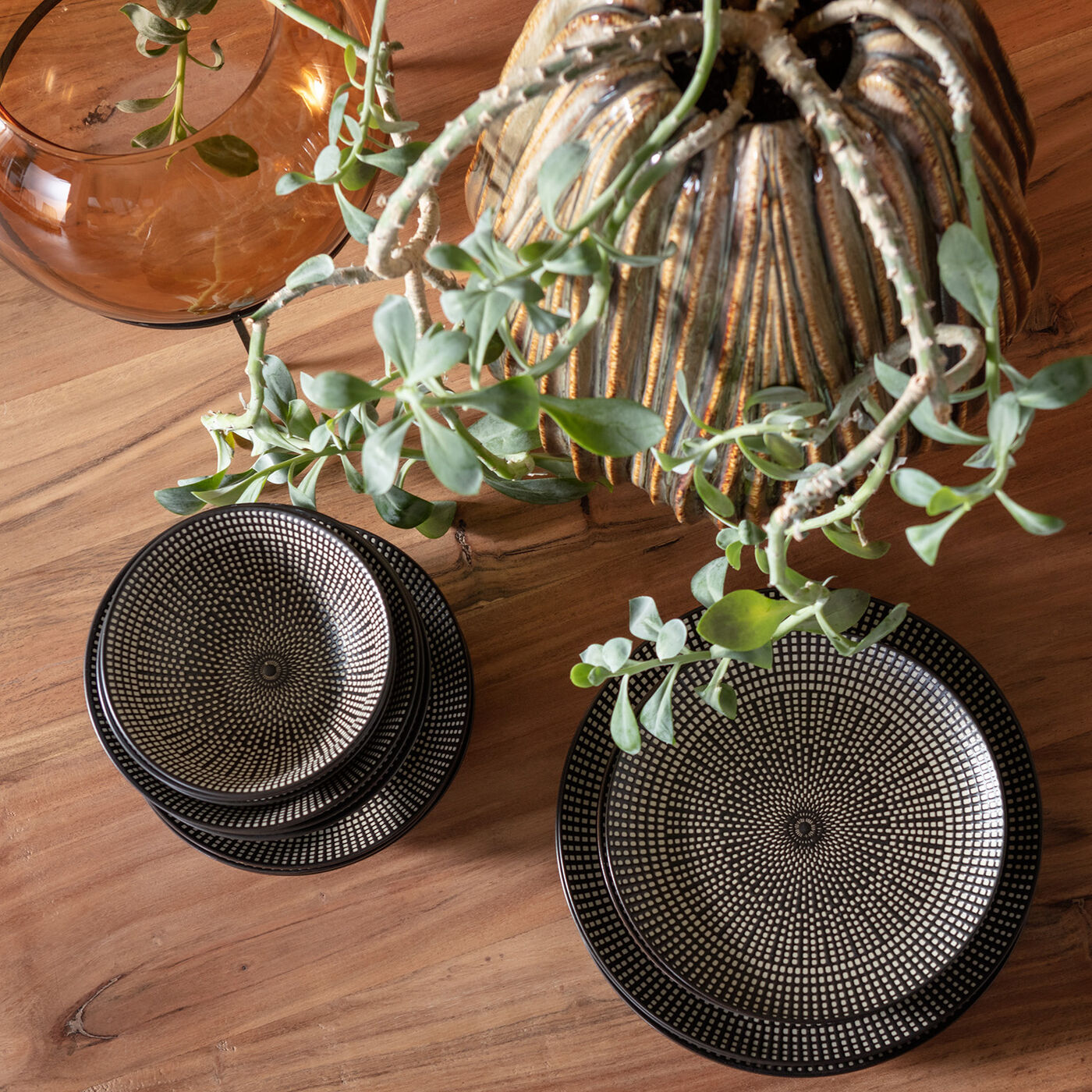Mysterious black and a slightly raised, regular ethnic pattern lend the Gwayi china tableware series its exquisite design. A modern range of dishes that is also practical: Gwayi is suitable for the microwave and the dishwasher.