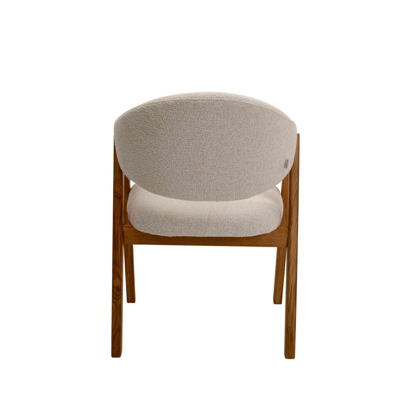 This Scandinavian-style armchair combines soft shapes with natural materials. The bouclé cover in brilliant white gives it a sophisticated touch, while the oiled oak frame provides stability and warmth. The ergonomic shape and comfortable upholstery invite you to spend relaxing hours at the dining table, in the home office or in the lounge. Perfect for minimalist living concepts or as a stylish contrast to bold colours - a design highlight with a feel-good factor.