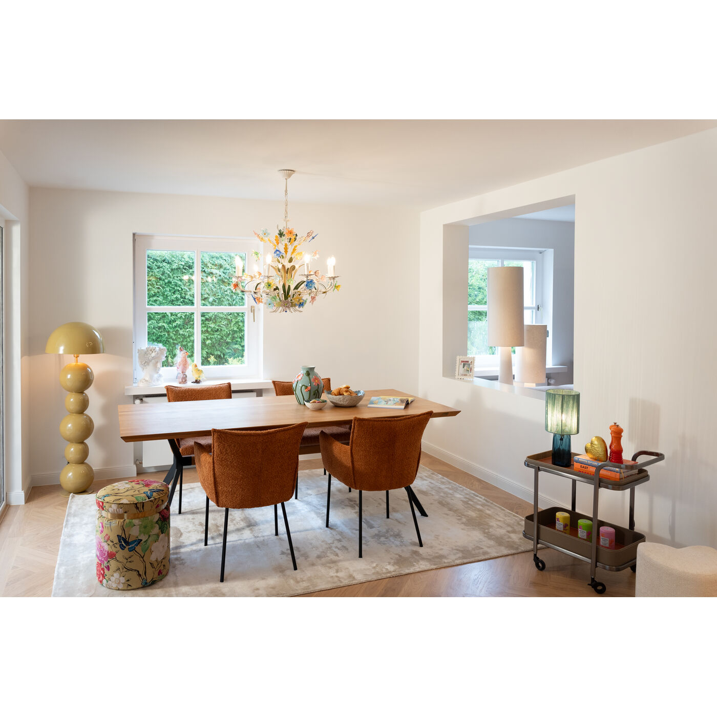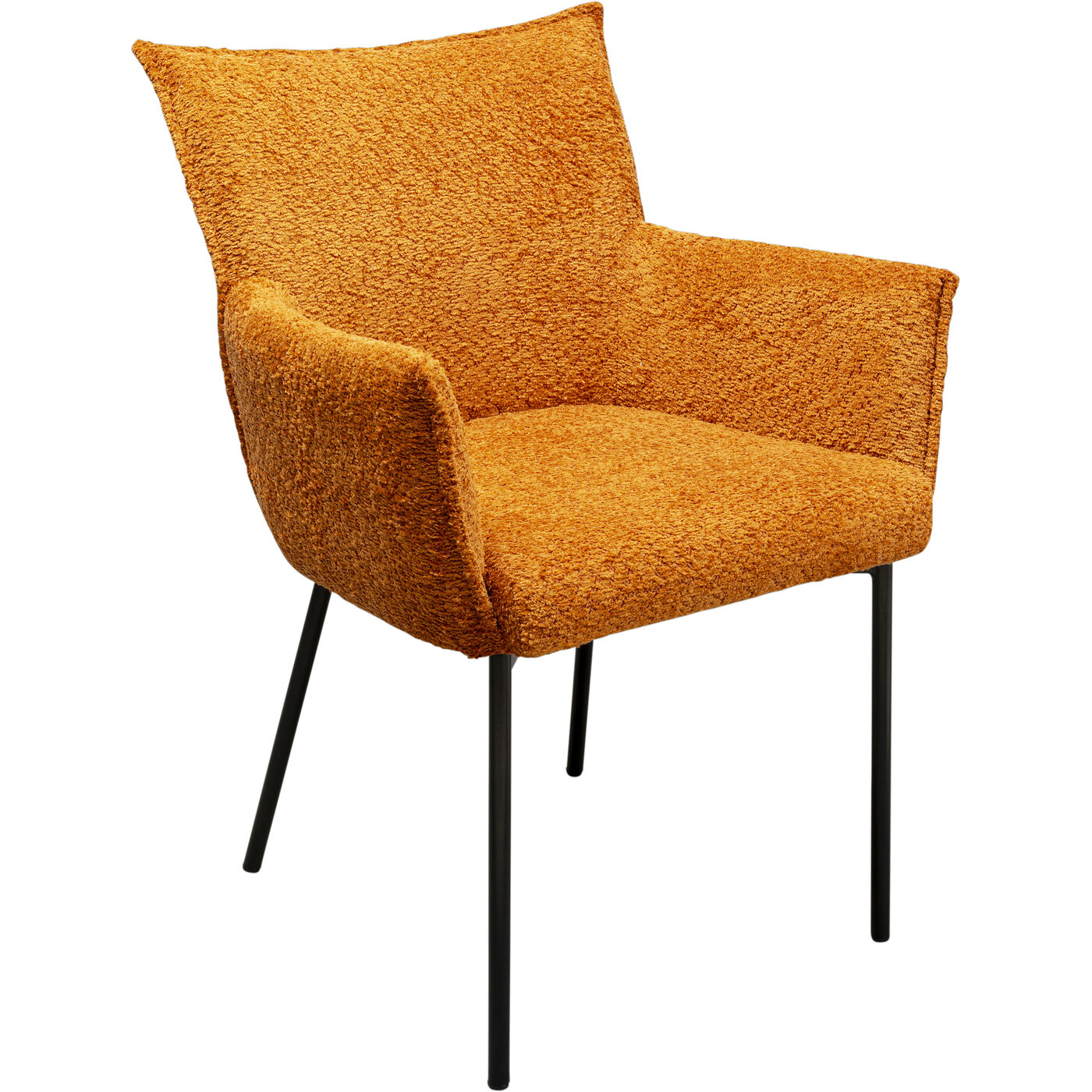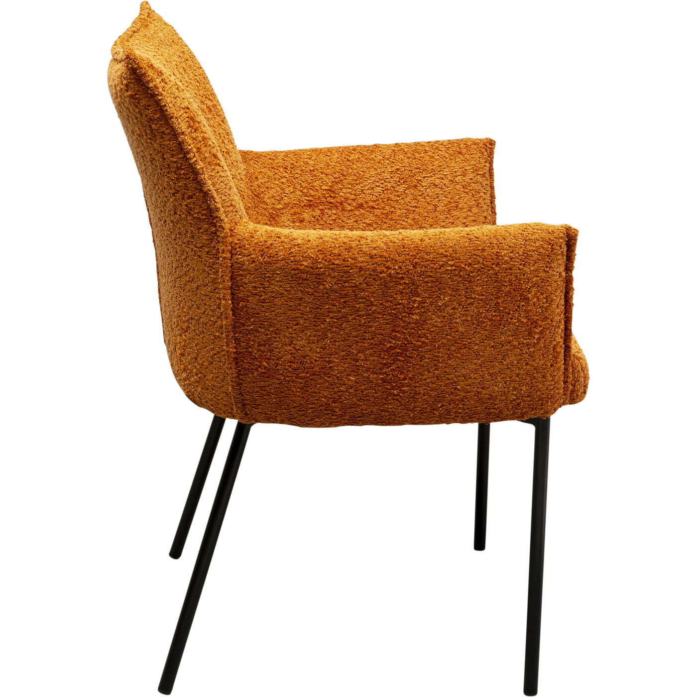 A stylish statement with a feel-good character: the warm orange cover gives this armchair a lively elegance and sets cheerful accents. Upholstered furniture like this not only brings comfort, but also fresh color impulses to the interior. The gently shimmering surface is pleasantly soft to the touch and creates an inviting sense of coziness. The chair can be combined particularly effectively as a highlight with light-colored wooden tables, neutral carpets or minimalist furnishings. Ideal for spicing up dining areas, designing creative work zones or adding a touch of color to cosy corners.
