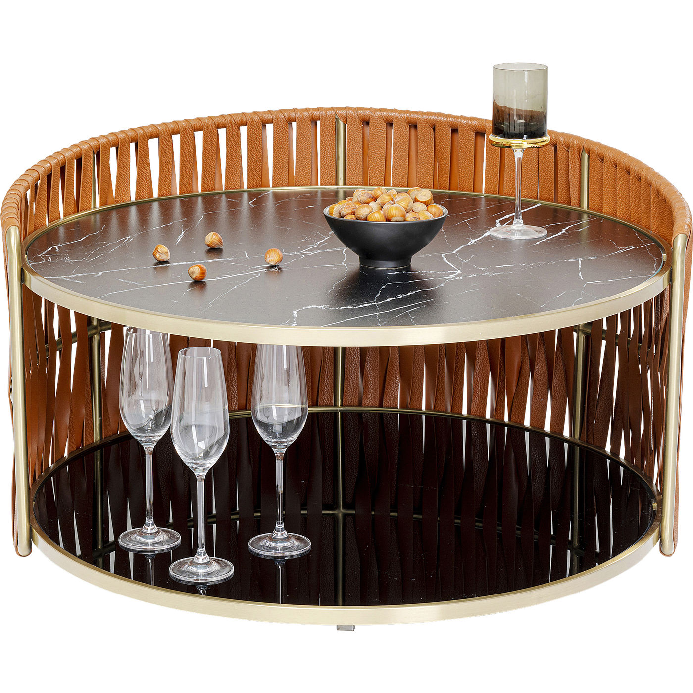 - Round coffee table in a class of its own with two glass tops and above all with design flair,Exclusively created for KARE by the well-known Danish furniture designer Morten Georgsen