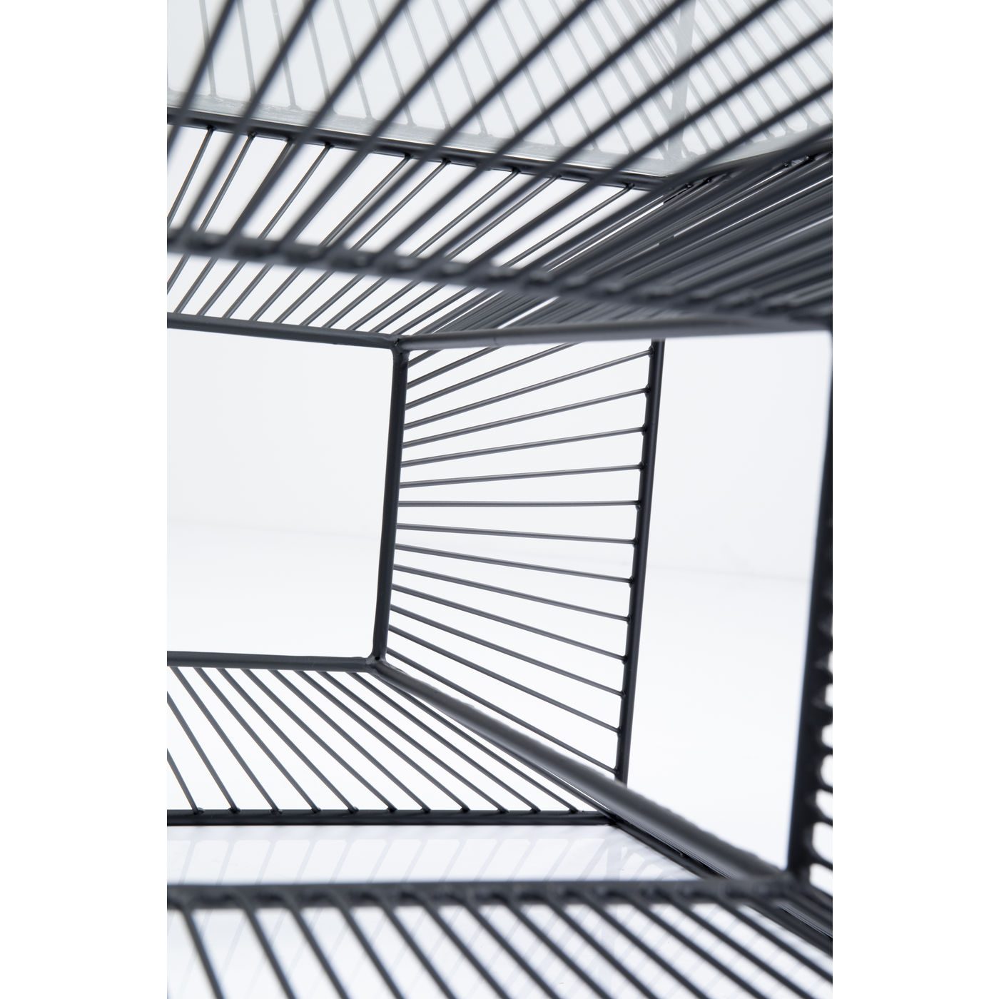 This graphic, reduced coffee table with its clear glass top is a design highlight: the handmade steel wire frame creates stunning visual effects and adds something very modern to every furnishing environment.