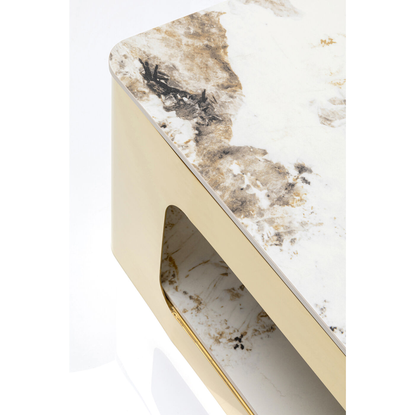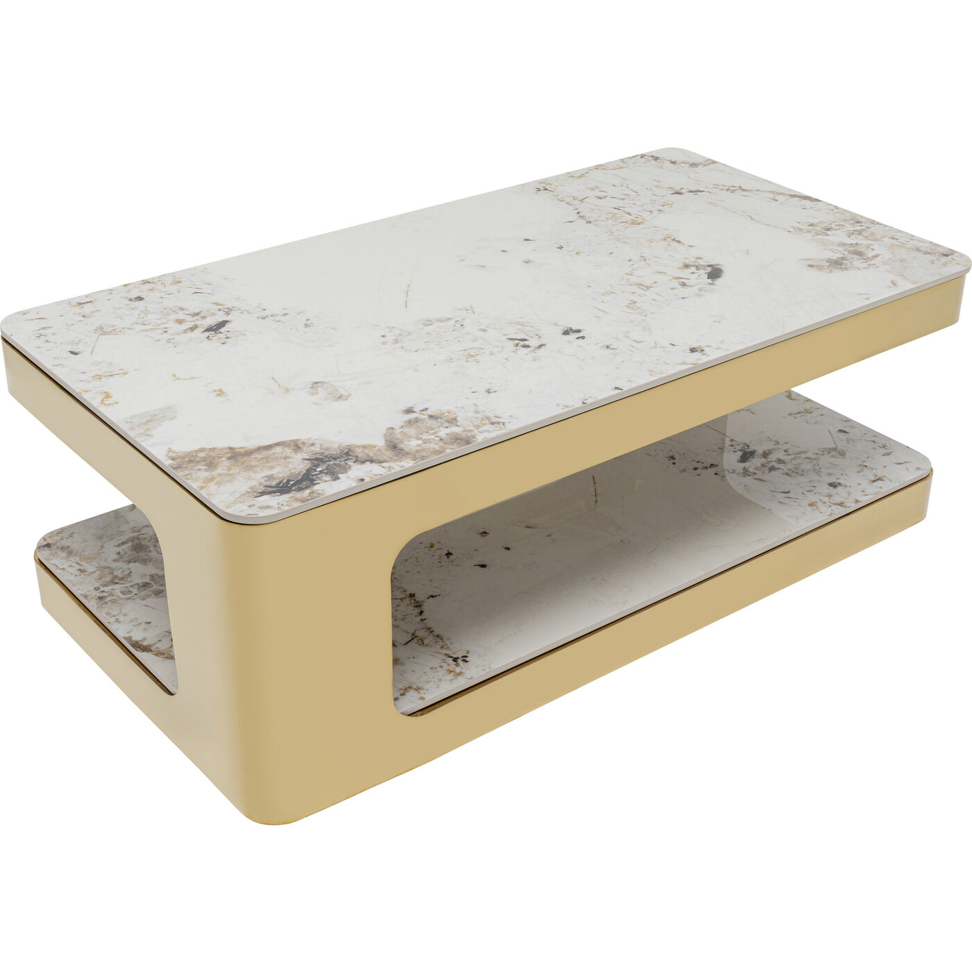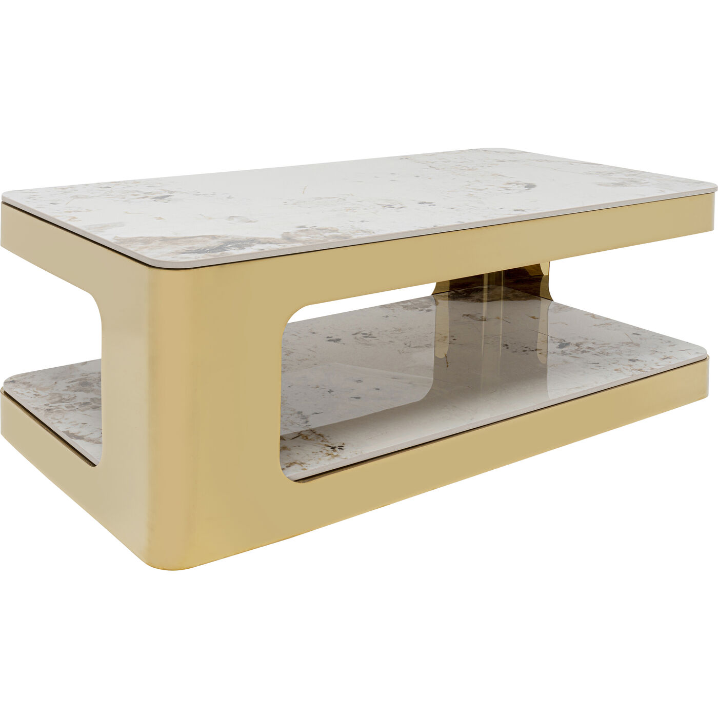 Lift your living room to the next design level with our elegant, modern and glamorous coffee table in gold with light ceramic table tops. This gorgeous piece of furniture will add luxury and sophistication to your rooms. With a spacious rectangular shape, it not only offers stunning aesthetics but also practical surface areas on two levels. Perfect for displaying drinks, books or decorations in style. Add glamour and style to your home with this remarkable coffee table.
