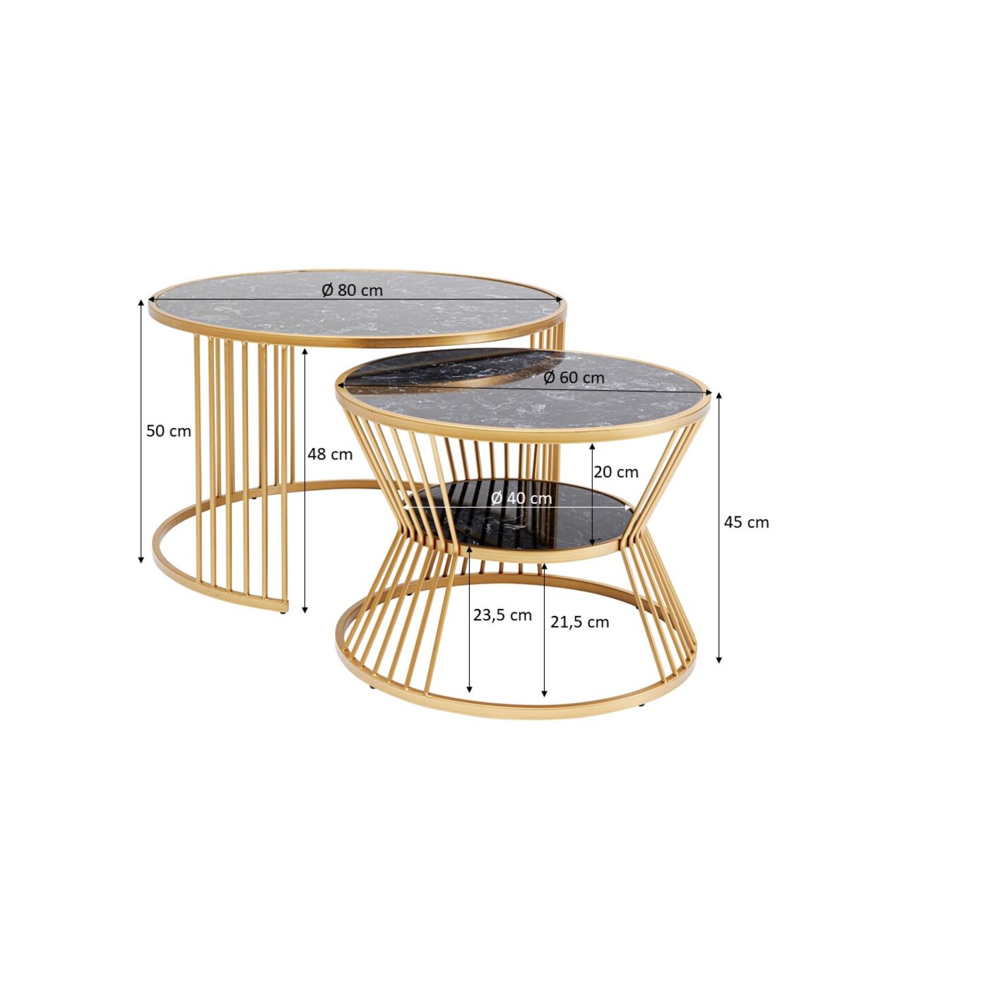 - Set of two side tables in black and gold