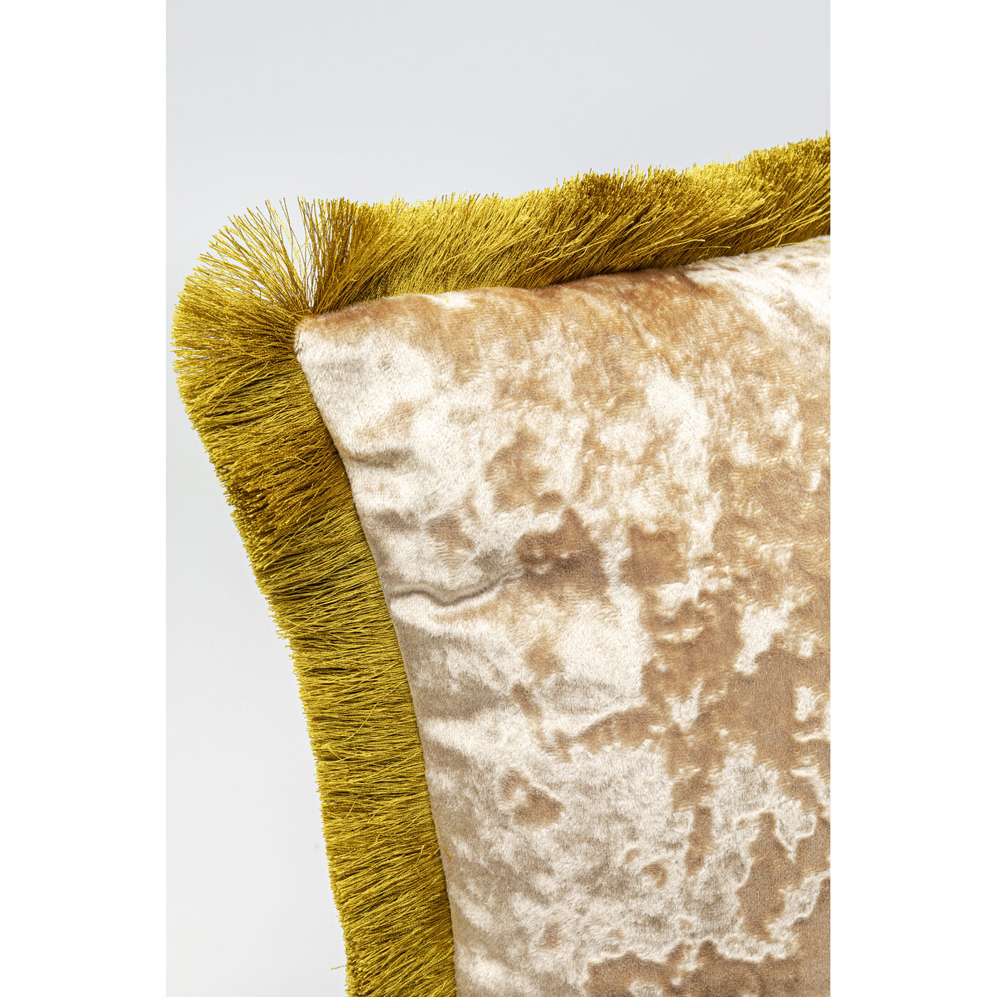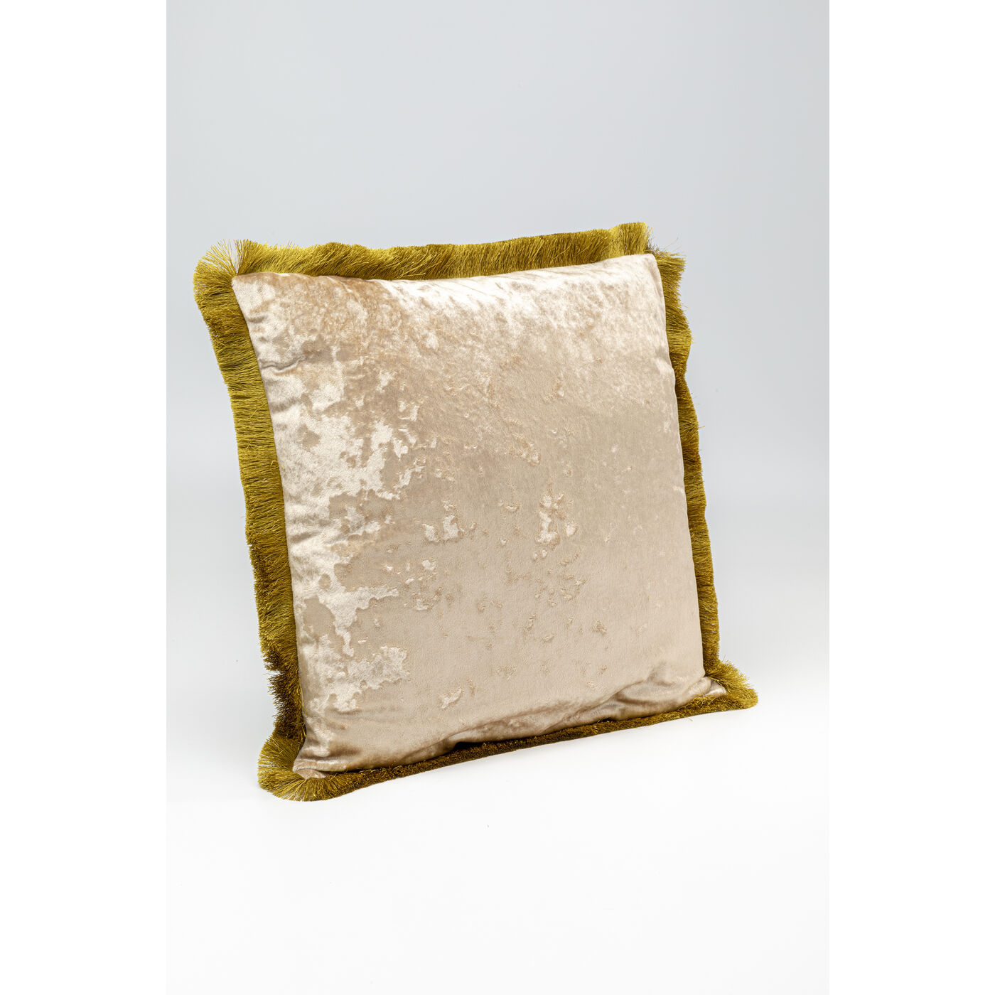 - Velvet cushion in beige and yellow, sized 45x45x12 cm (H/W/D)