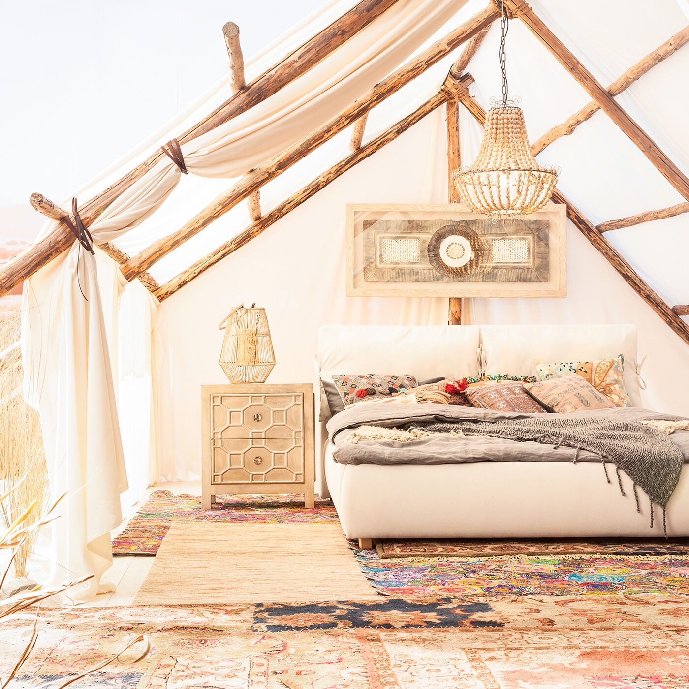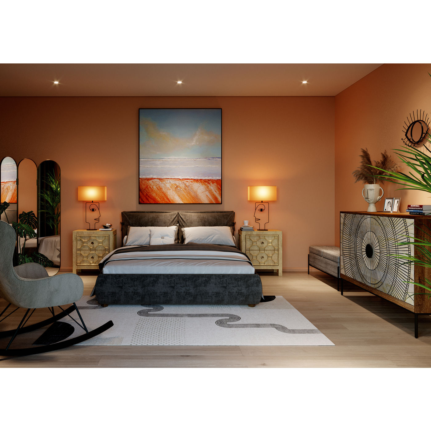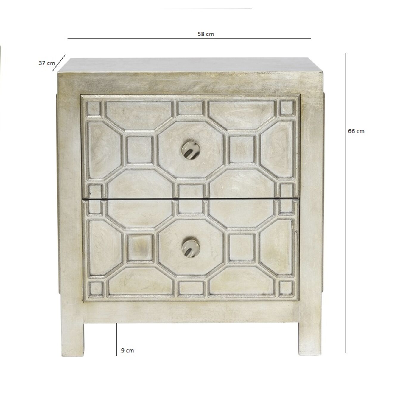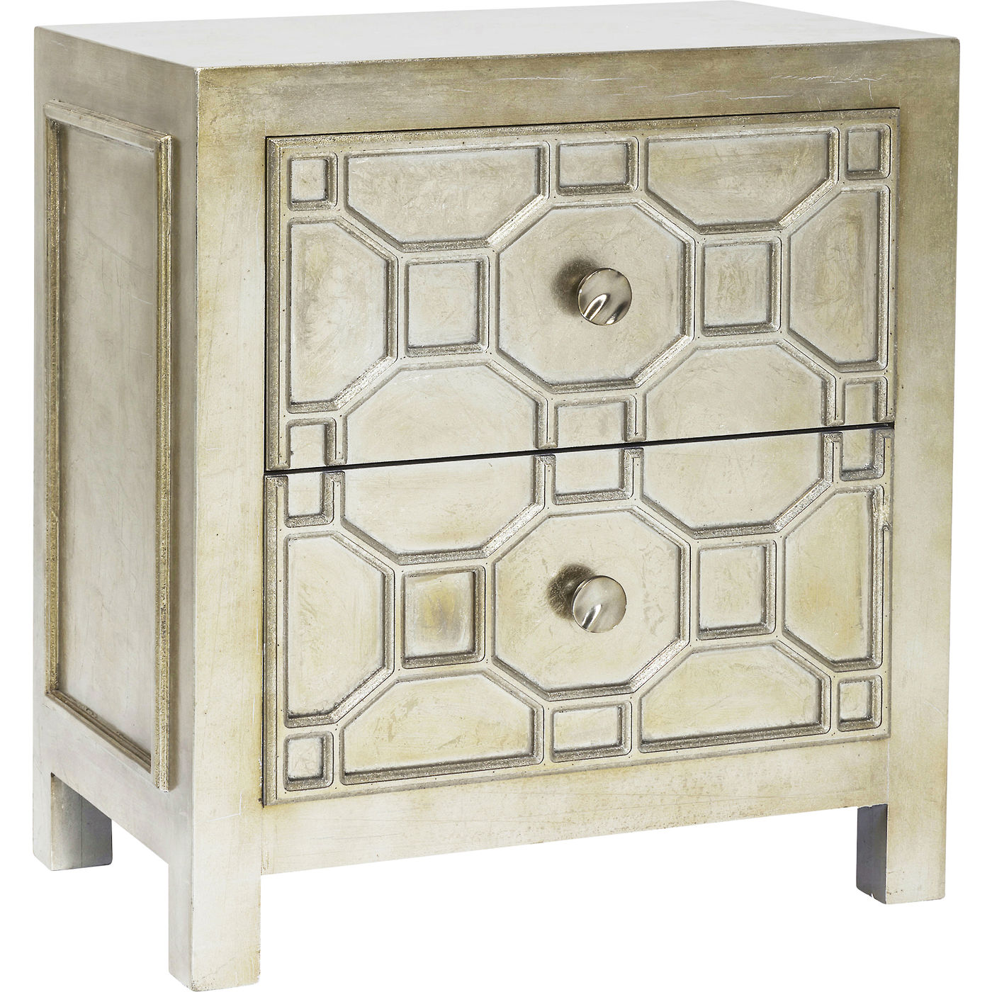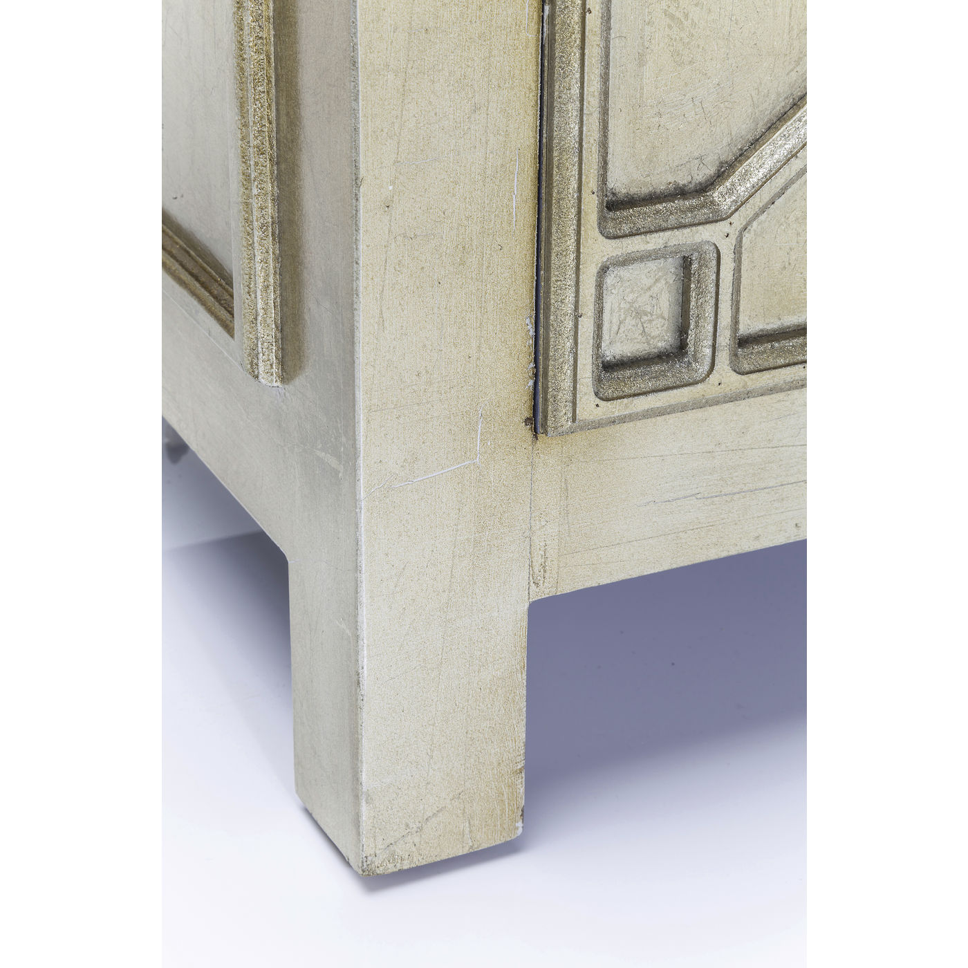 Homage to the ornament. This small chest of drawers from the Alhambra series fascinates with Moorish-inspired, sublime ornamentation on the front. The appearance is refined by a stylish matt silver finish. Two drawers.