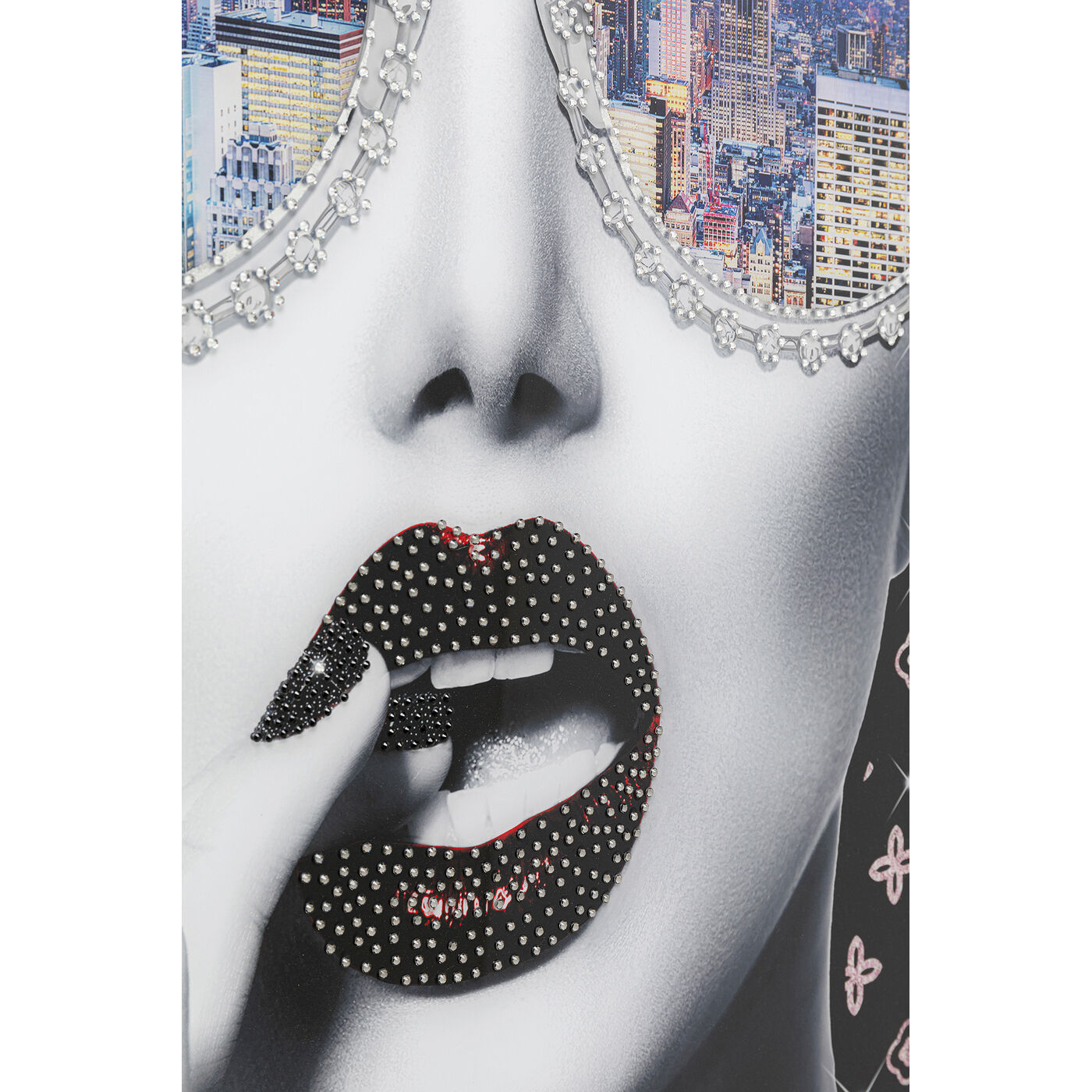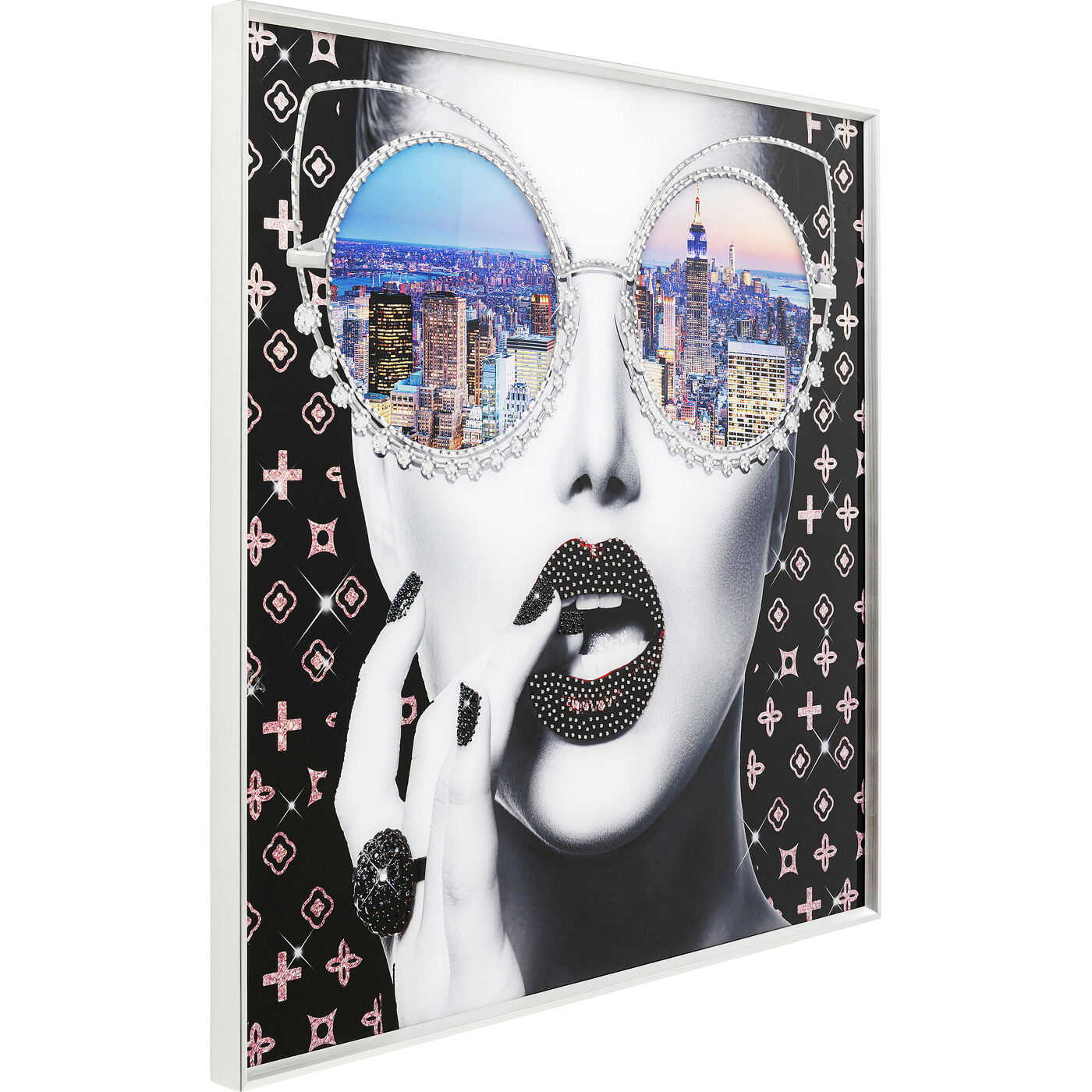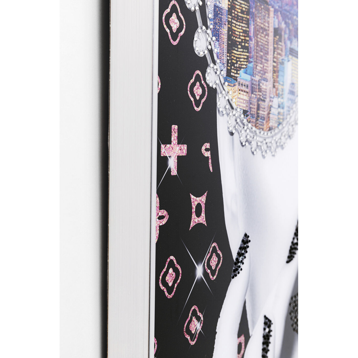- A picture behind glass with a silver-coloured frame, which achieves special effects thanks to the rhinestones that are applied