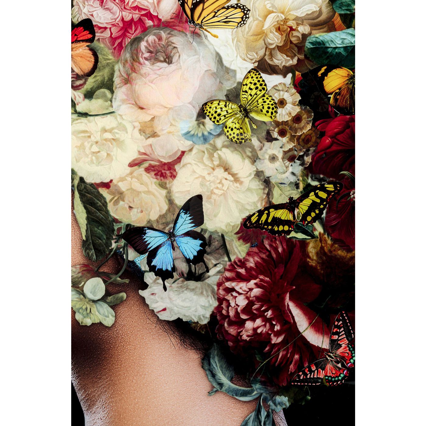 - Large glass picture with flowers, butterflies, birds and a portrait