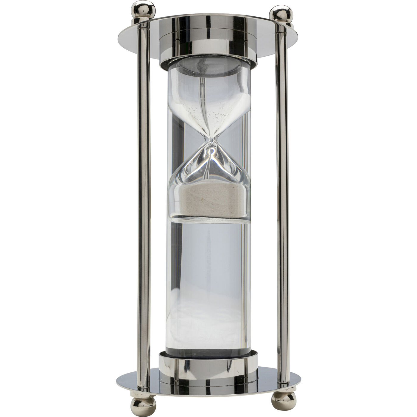 Hourglasses are decorative objects that, in addition to their function of measuring time, create a calming, contemplative atmosphere in any room. This luxurious silver hourglass combines modern design with timeless elegance to create a true work of art for measuring time. The fine white sand trickles gently through the transparent glass body, which is held by a shiny silver frame. This decorative object gives your home a touch of serenity and invites you to pause and savour the moment.
