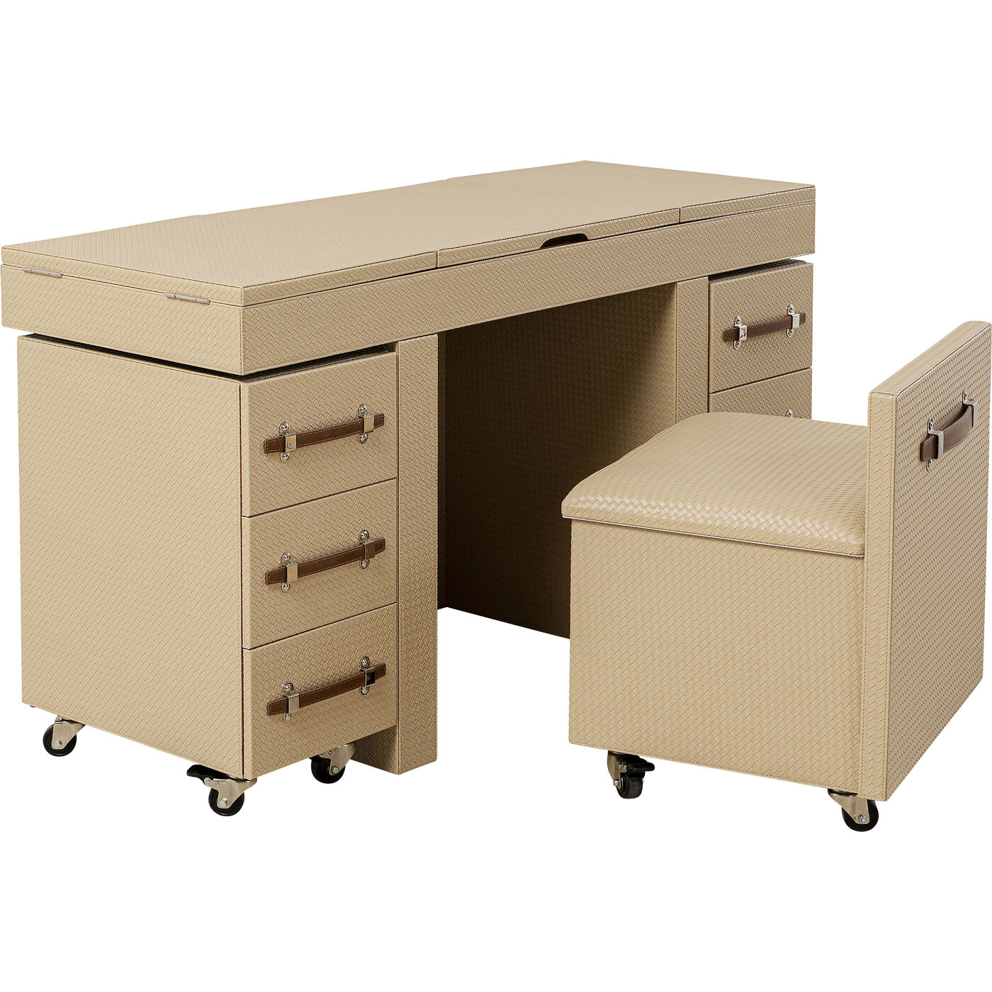- Refined dressing table in beige on casters, 78 x 138 x 50.5 cm (H/W/D)