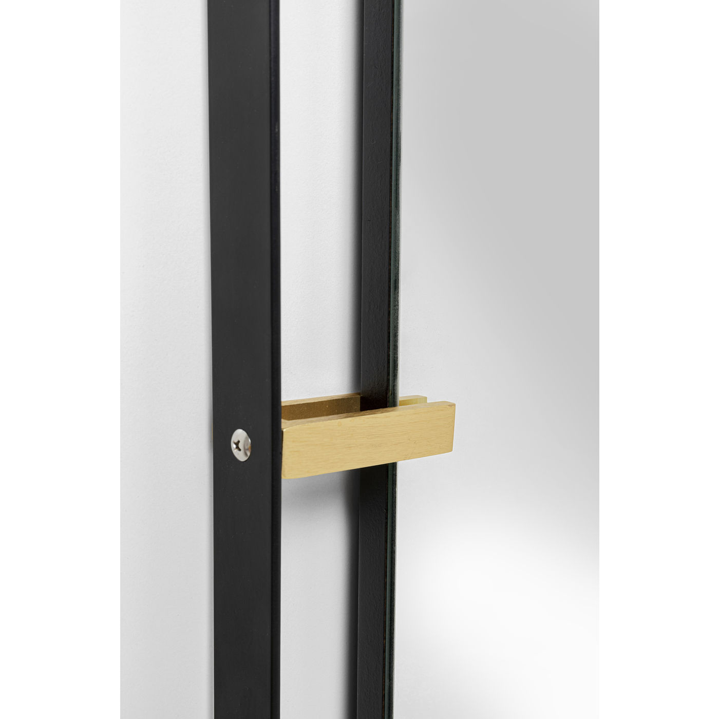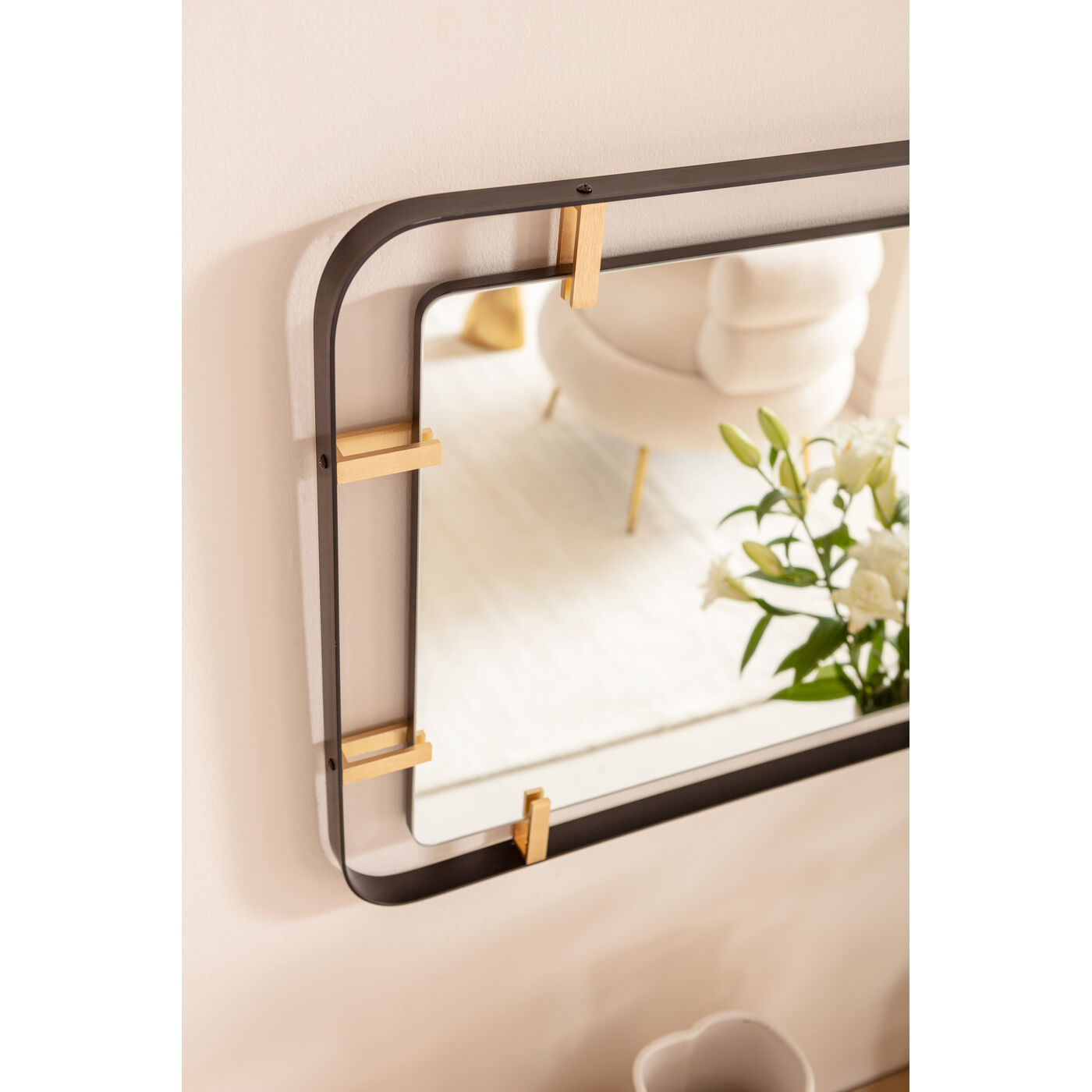 - A large, rectangular mirror with an unusual, filigree frame in black and gold ,The large surface of the wall mirror brings plenty of additional light into the room