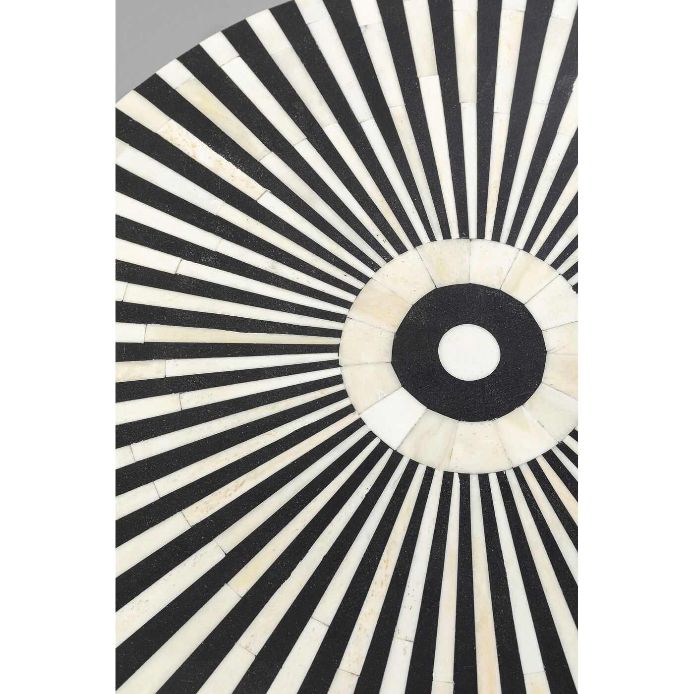 Our handmade round side table with inlay work in black and white is a real treasure for the home. Every detail has been carefully crafted by hand, making it a valuable piece of furniture. The ornate inlays give the table a unique charm and make it an eye-catcher that will perfectly complement any furnishing style. This side table is not only functional, but also a work of art that will enrich your interior. Did you know that interior designers advise you to place a piece of furniture or decorative object in black in every room? Black adds structure and catches the eye.