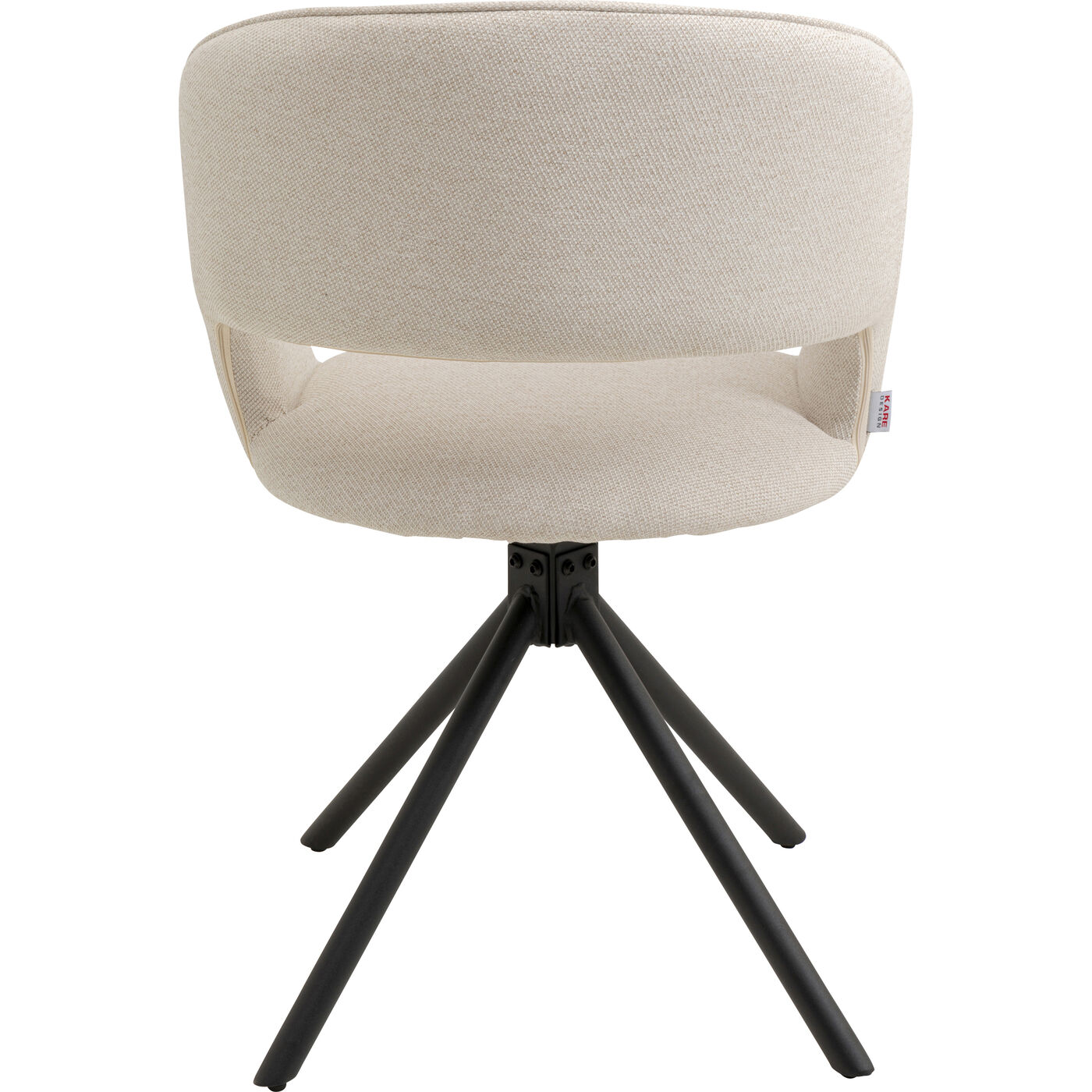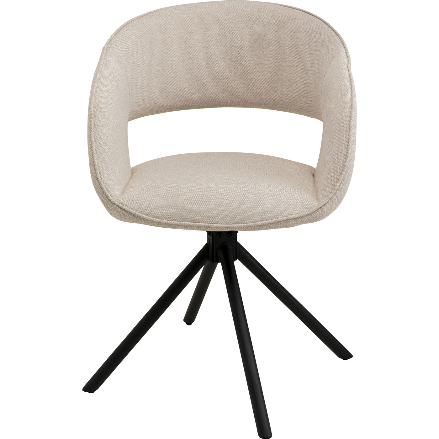 Modern design with a feel-good factor: this beautifully shaped swivel chair brings lightness and style to any room. The gently curved silhouette meets the exciting contrast of light beige and deep black frame - a look that combines timeless elegance with urban flair. Thanks to the clever swivel function, the chair remains flexible at all times, whether for creative work, dinner or a relaxed chat. The soft upholstery ensures comfortable seating with a sense of style. It looks particularly elegant when mixed with glass, marble or minimalist wood tones. A versatile statement piece for modern interiors with character.